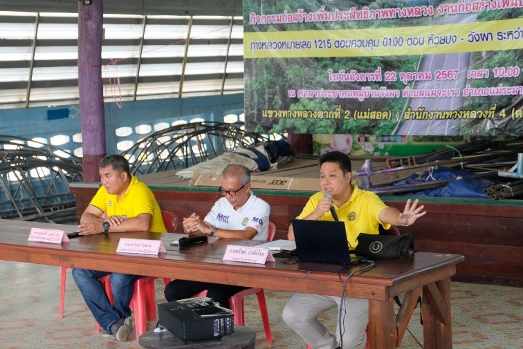 สรุปผลการดำเนินงานการมีส่วนร่วมของประชาชน โครงการก่อสร้างโครงข่ายทางหลวงแผ่นดิน กิจกรรมก่อสร้างเพิ่มประสิทธิภาพทางหลวง งานก่อสร้างเพิ่มประสิทธิภาพทางหลวง รหัสงาน 11720 ประจำปีงบประมาณ 2568 ทางหลวงหมายเลข 1215 ตอนควบคุม 0100 ตอน ห้วยบง - วังผา ระหว่าง กม.0+145 - กม.7+685