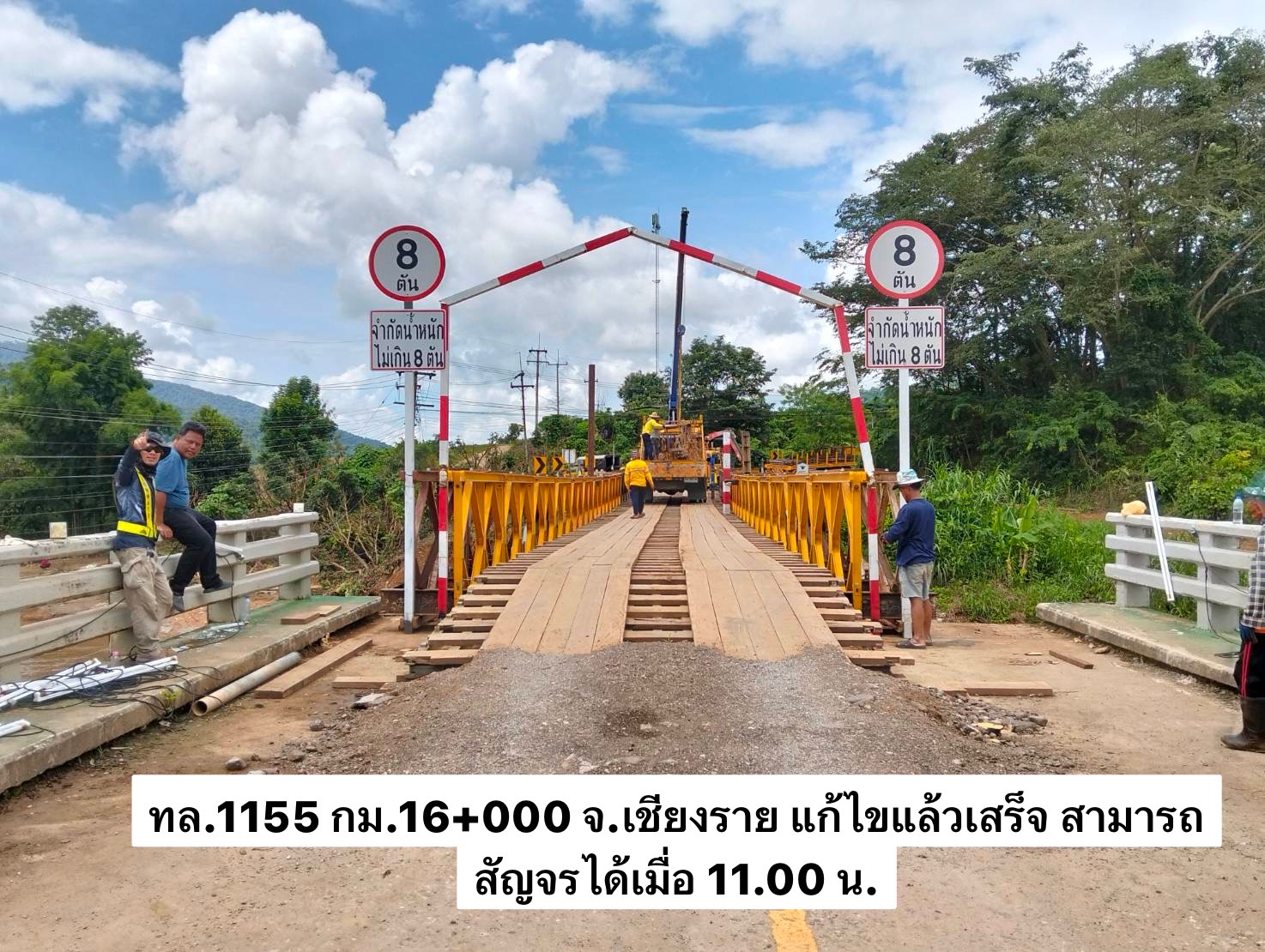 กรมทางหลวง ติดตั้งสะพานเบลี่ย์บนทล.1155 ทรายกาด - บ้านลุง จ.เชียงราย แล้วเสร็จ พร้อมสรุปสถานการณ์น้ำท่วมประจำวันที่ 15 ก.ย. 67 พบทางหลวงผ่านไม่ได้ 4 แห่ง สอบถามเส้นทางโทร 1586