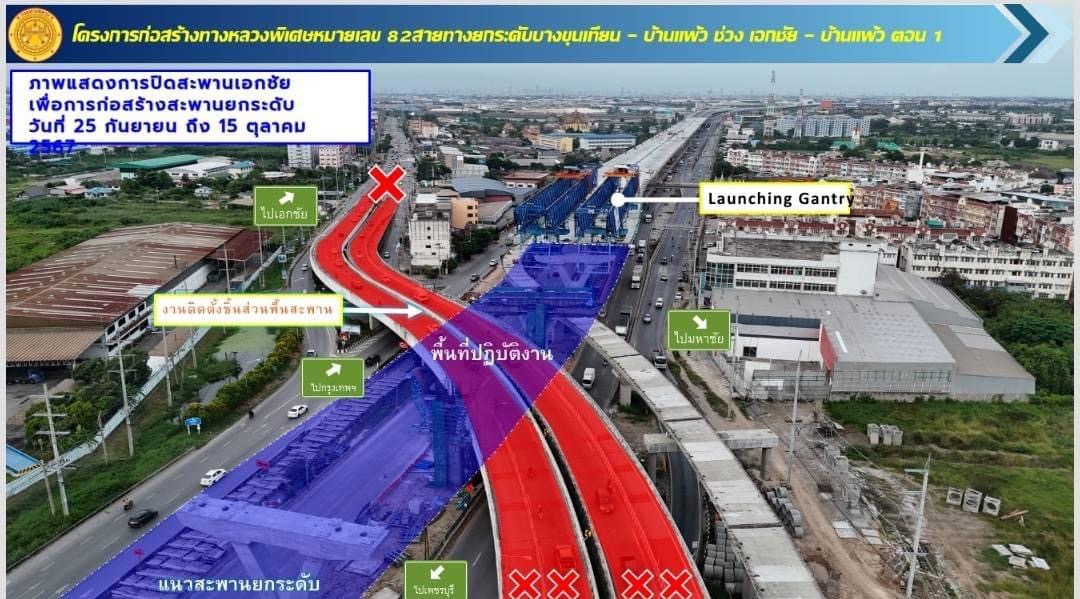 แจ้งปิดการจราจรสะพานต่างระดับเอกชัย พื้นที่ อ.เมือง จ.สมุทรสาคร บนทางหลวงหมายเลข 35 (ถนนพระรามที่ 2)