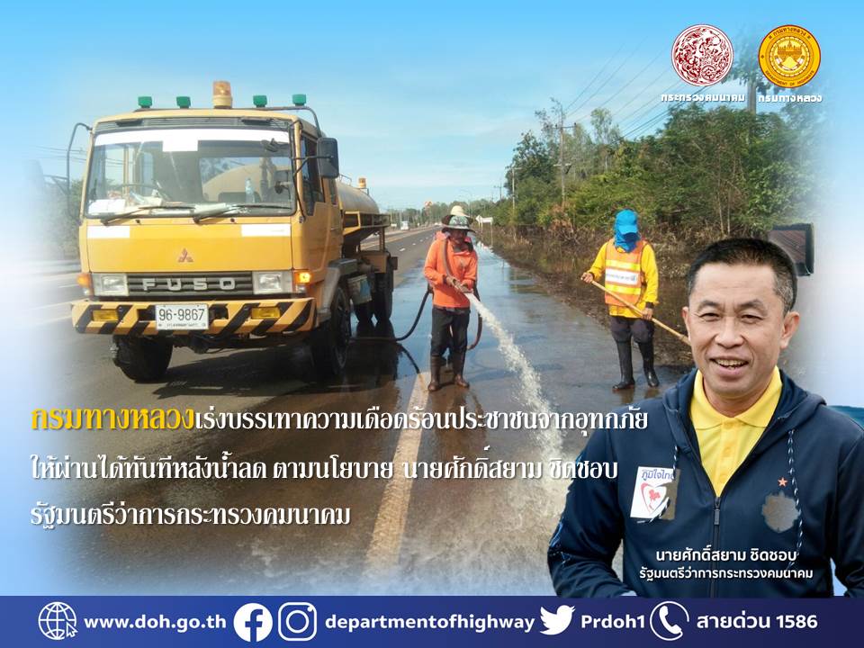 401 28/10/2565 กรมทางหลวงเร่งบรรเทาความเดือดร้อนประชาชนจากอุทกภัยให้ผ่านได้ทันทีหลังน้ำลด ตามนโยบาย นายศักดิ์สยาม ชิดชอบ รัฐมนตรีว่าการกระทรวงคมนาคม