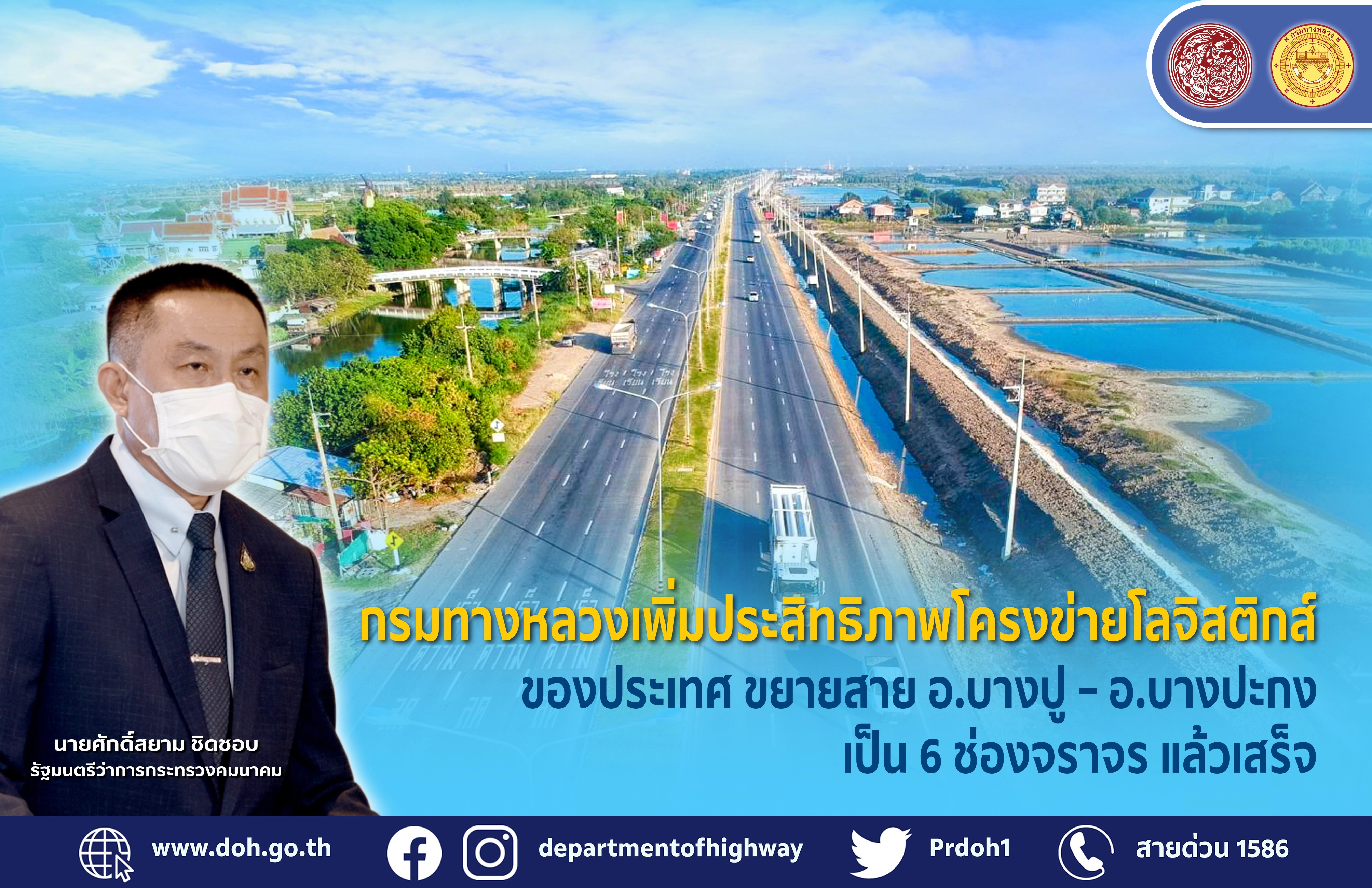 กรมทางหลวงเพิ่มประสิทธิภาพโครงข่ายโลจิสติกส์ของประเทศ ขยายสาย บางปู – อ.บางปะกง เป็น 6 ช่องจราจร แล้วเสร็จ