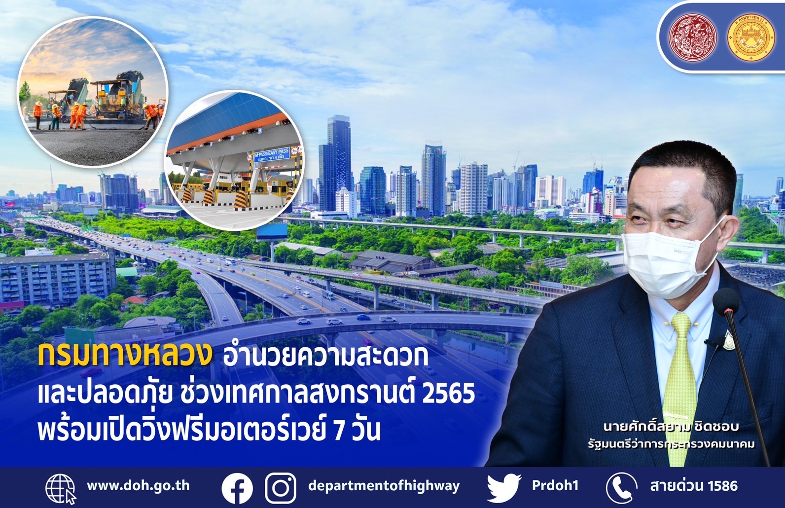 กรมทางหลวง อำนวยความสะดวกและปลอดภัยช่วงเทศกาลสงกรานต์ 2565 พร้อมเปิด วิ่งฟรีมอเตอร์เวย์ 7 วัน เพื่อรองรับการเดินทางของประชาชนสู่ภูมิภาคต่างๆ