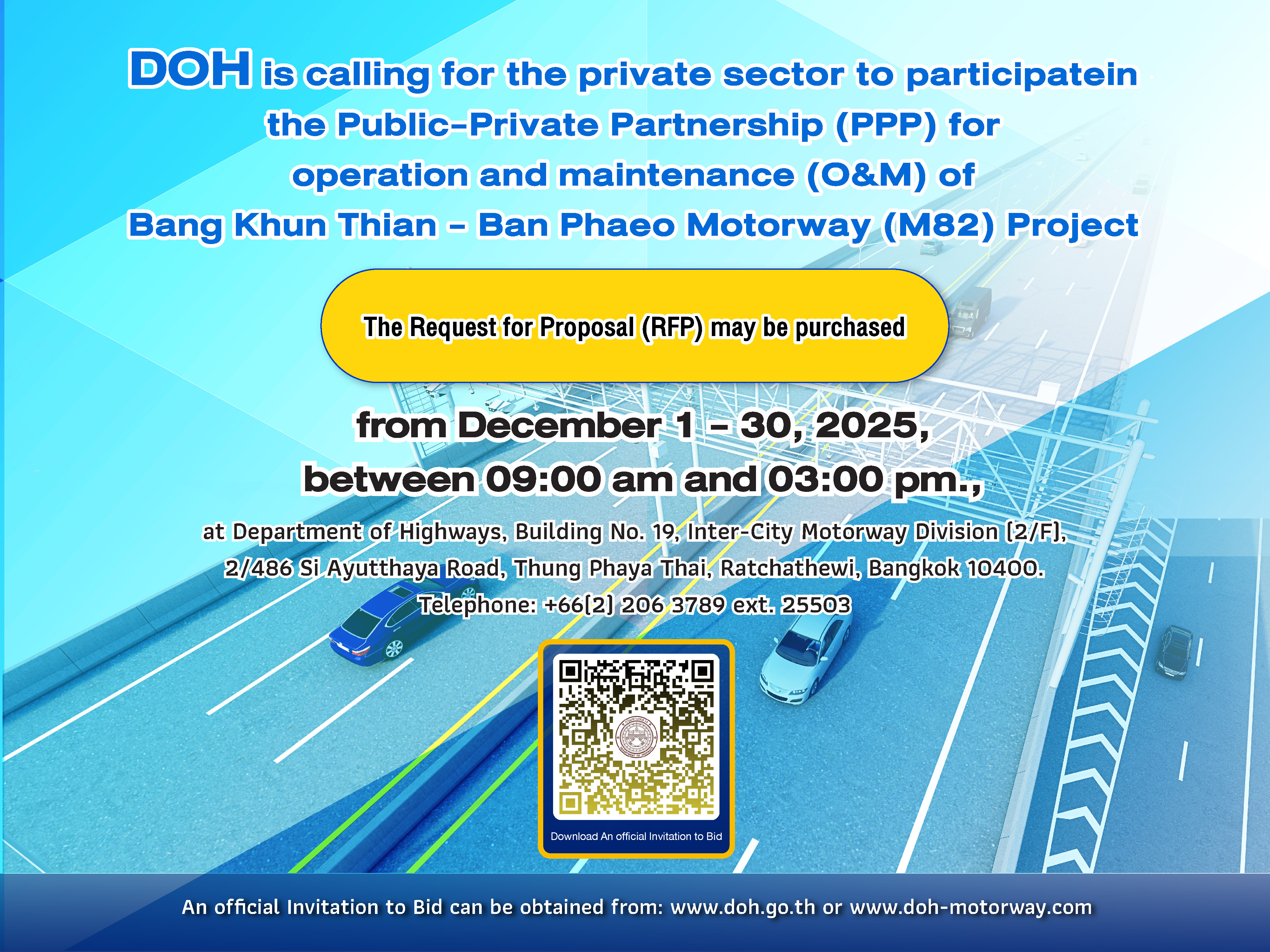 กรมทางหลวงขอเชิญเอกชนร่วมลงทุนโครงการทางหลวงพิเศษหมายเลข 82 สายทางยกระดับบางขุนเทียน-บ้านแพ้ว การดำเนินงานและบำรุงรักษา (O&M) ของกรมทางหลวง