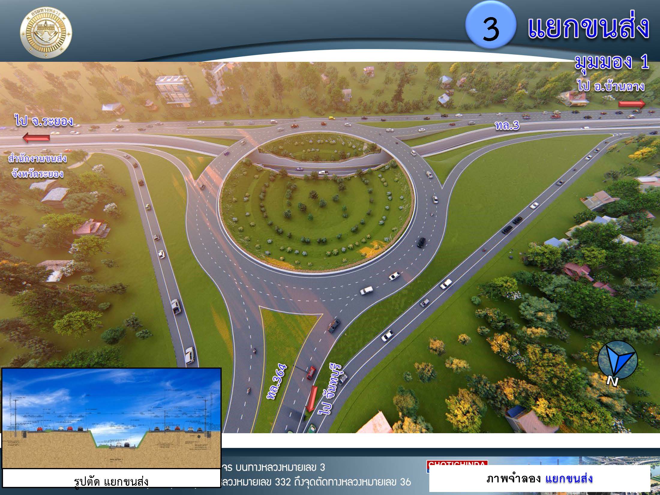 - แยกขนส่ง ช่วง กม.213+500 โดยก่อสร้างทางลอดบนทางหลวงหมายเลข 3 ทิศทางจากบ้านฉางไประยอง ส่วนทิศทางไปบ้านฉางเป็นระดับดิน และก่อสร้างวงเวียนสำหรับทิศทางการจราจรเลี้ยวขวา