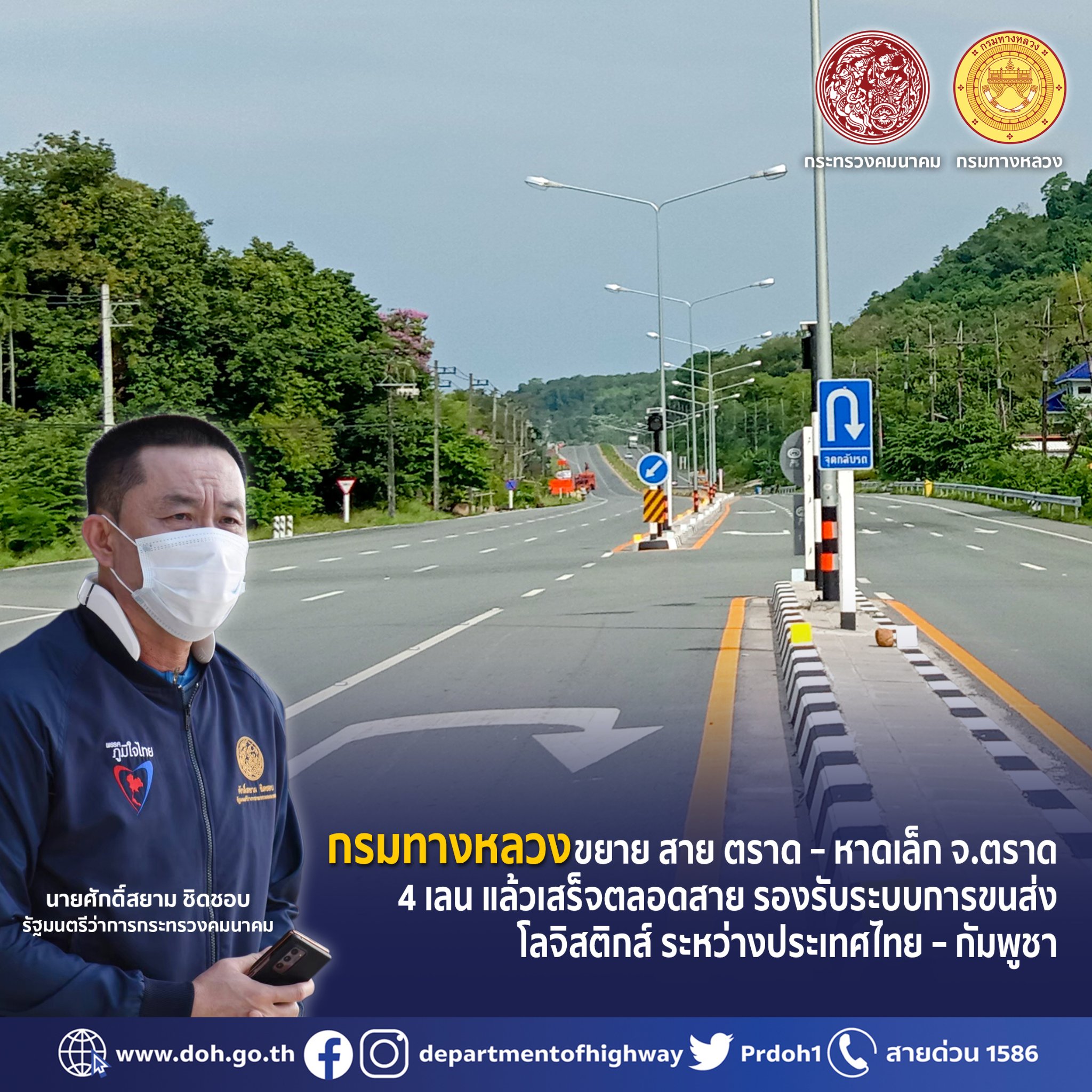 เมื่อโครงการดังกล่าวก่อสร้างแล้วเสร็จจะทำให้ทางหลวงหมายเลข 3 สายตราด – หาดเล็ก เป็น 4 ช่องจราจร ตลอดสาย เป็นการส่งเสริมเศรษฐกิจของภาคตะวันออก ทำให้เกิดการพัฒนาเศรษฐกิจสังคมของจังหวัดใกล้เคียง รองรับการขยายของตัวเมืองและการขนส่งสินค้าและผู้โดยสาร ระหว่างประเทศไทย – กัมพูชา อีกทั้งยังเป็นโครงสร้างพื้นฐานสำคัญที่จะช่วยพัฒนาคุณภาพชีวิตความเป็นอยู่ของประชาชนในภูมิภาคให้ดีขึ้น กรมทางหลวงขอความร่วมมือผู้ใช้ทางปฏิบัติตาม “ชีวิตวิถีใหม่ ขับขี่อย่างปลอดภัย ไร้อุบัติเหตุ” ขับขี่ด้วยความระมัดระวังเพื่อความปลอดภัยของตัวท่านและผู้ร่วมทาง ประชาชนสามารถสอบถามเส้นทางการเดินทางได้ที่ สายด่วนกรมทางหลวง โทร 1586 (โทรฟรีทุกเครือข่ายตลอด 24 ชั่วโมง)