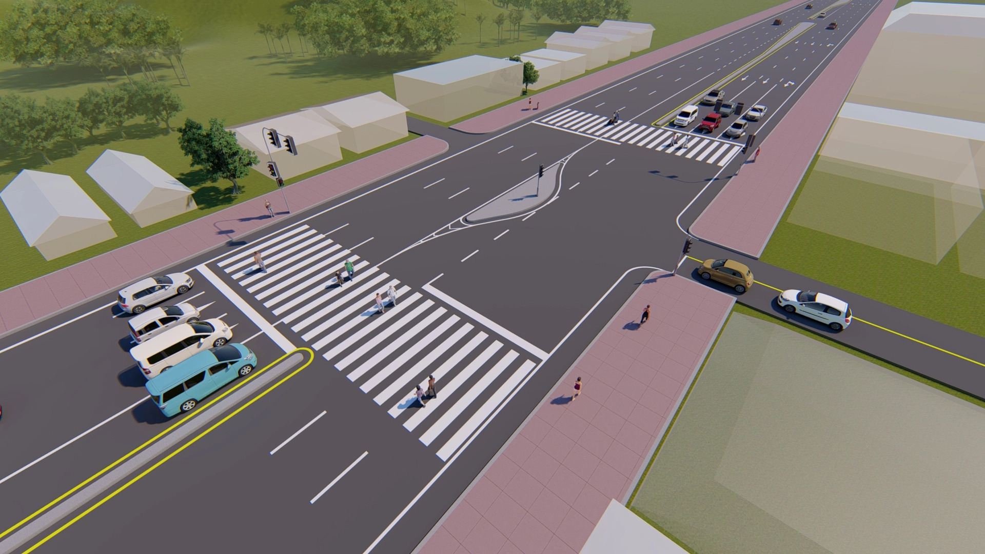 แนวเส้นทางโครงการมีทางแยก 1 แห่ง คือ แยกซอยนางทองที่ กม. 797+054 ออกแบบปรับปรุงเป็นทางแยกแบบควบคุมด้วยสัญญาณไฟจราจร ทั้งนี้เส้นทางโครงการมีบางช่วงที่ตัดผ่านย่านชุมชนและทางหลวงท้องถิ่นจึงได้ออกแบบจัดการจราจรและจุดกลับรถออกเป็น 4 รูปแบบประกอบด้วยดังนี้