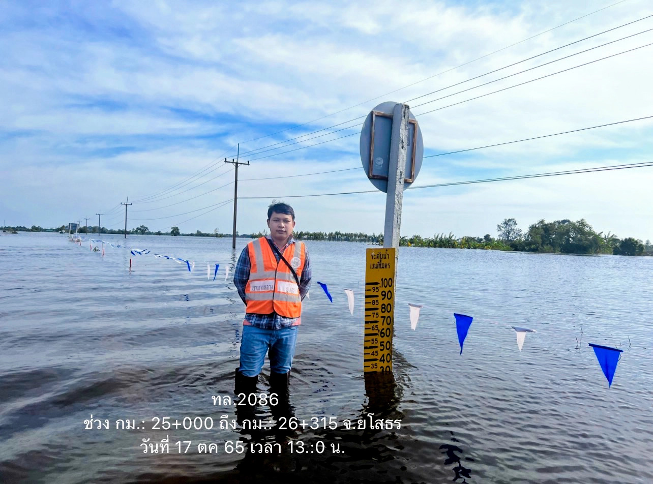 นายสราวุธ ทรงศิวิไล อธิบดีกรมทางหลวง เปิดเผยว่า จากสถานการณ์น้ำท่วมในหลายพื้นที่ ส่งผลให้ทางหลวงบางเส้นทางมีน้ำท่วมสูงเป็นเหตุให้ไม่สามารถใช้สัญจรได้ตามปกติ กรมทางหลวงได้สั่งการให้ สำนักงานทางหลวง แขวงทางหลวง หมวดทางหลวงทั่วประเทศ เฝ้าระวัง และติดตามสถานการณ์อย่างใกล้ชิด หากพื้นที่ใดประสบปัญหาก็จะระดมบุคลากร นำเครื่องจักรและวัสดุอุปกรณ์เข้าให้การช่วยเหลือเพื่อเร่งระบายน้ำและบรรเทาความเดือดร้อนโดยเร็วที่สุด พร้อมกำชับให้ผู้บริหารในพื้นที่ติดตามสถานการณ์อย่างใกล้ชิด นอกจากนี้ยังติดตั้งป้ายเตือนและอุปกรณ์อำนวยความปลอดภัยแก่ผู้ใช้เส้นทาง ในขณะที่บางจังหวัดก็มีการล้างทำความสะอาดถนนหลังจากน้ำลดลงบ้างแล้ว เพื่อบรรเทาความเดือดร้อนของประชาชนให้ได้รับความสะดวกปลอดภัยในการสัญจรโดยเร็วที่สุดอย่างต่อเนื่อง ตามข้อสั่งการของ นายศักดิ์สยาม ชิดชอบ รัฐมนตรีว่าการกระทรวงคมนาคม ที่มีความห่วงใยประชาชนผู้ประสบภัยในครั้งนี้ พร้อมทั้งเฝ้าระวังตลอด 24 ชั่วโมง เพื่อช่วยประชาชนอย่างทันท่วงที พร้อมกันนี้กรมทางหลวง ได้ทำการสรุปสถานการณ์อุทกภัยและดินสไลด์บนทางหลวง โดย สถานการณ์ประจำวันที่ 17 ตุลาคม 2565 เวลา 12.30 น. พบทางหลวงถูกน้ำท่วม/ดินสไลด์ ในพื้นที่ 12 จังหวัด ได้แก่ จ.ขอนแก่น, จ.ศรีสะเกษ, จ.นครราชสีมา ,จ.หนองบัวลำภู , จ.อุบลราชธานี, จ.มหาสารคาม, จ.ยโสธร, จ.นครปฐม, จ.อ่างทอง, จ.พระนครศรีอยุธยา, จ.สิงห์บุรี และ จ.นครสวรรค์ จำนวน 28 สายทาง 38 แห่ง การจราจรผ่านไม่ได้ 27 แห่ง ดังนี้