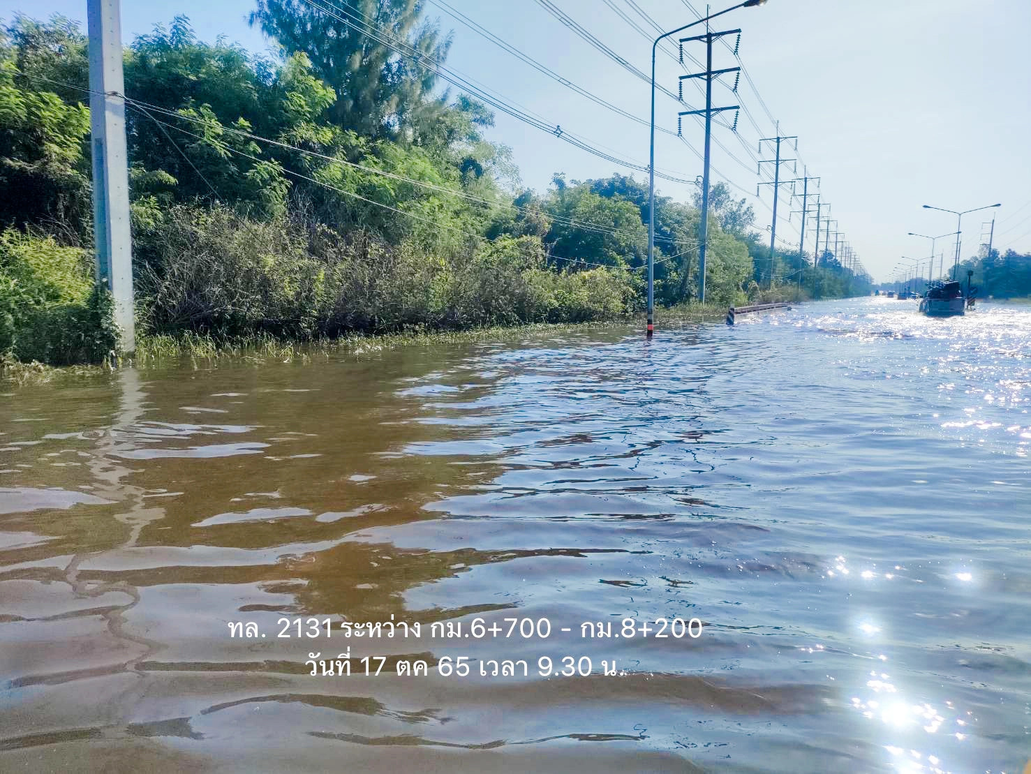 -ทางหลวงหมายเลข 2086 ตอน บ้านด่าน - เมืองน้อย ในพื้นที่ อ.ราษีไศล ช่วง กม.ที่ 37+000 - 39+500 ระดับน้ำ 50 ซม. การจราจรไม่สามารถผ่านได้