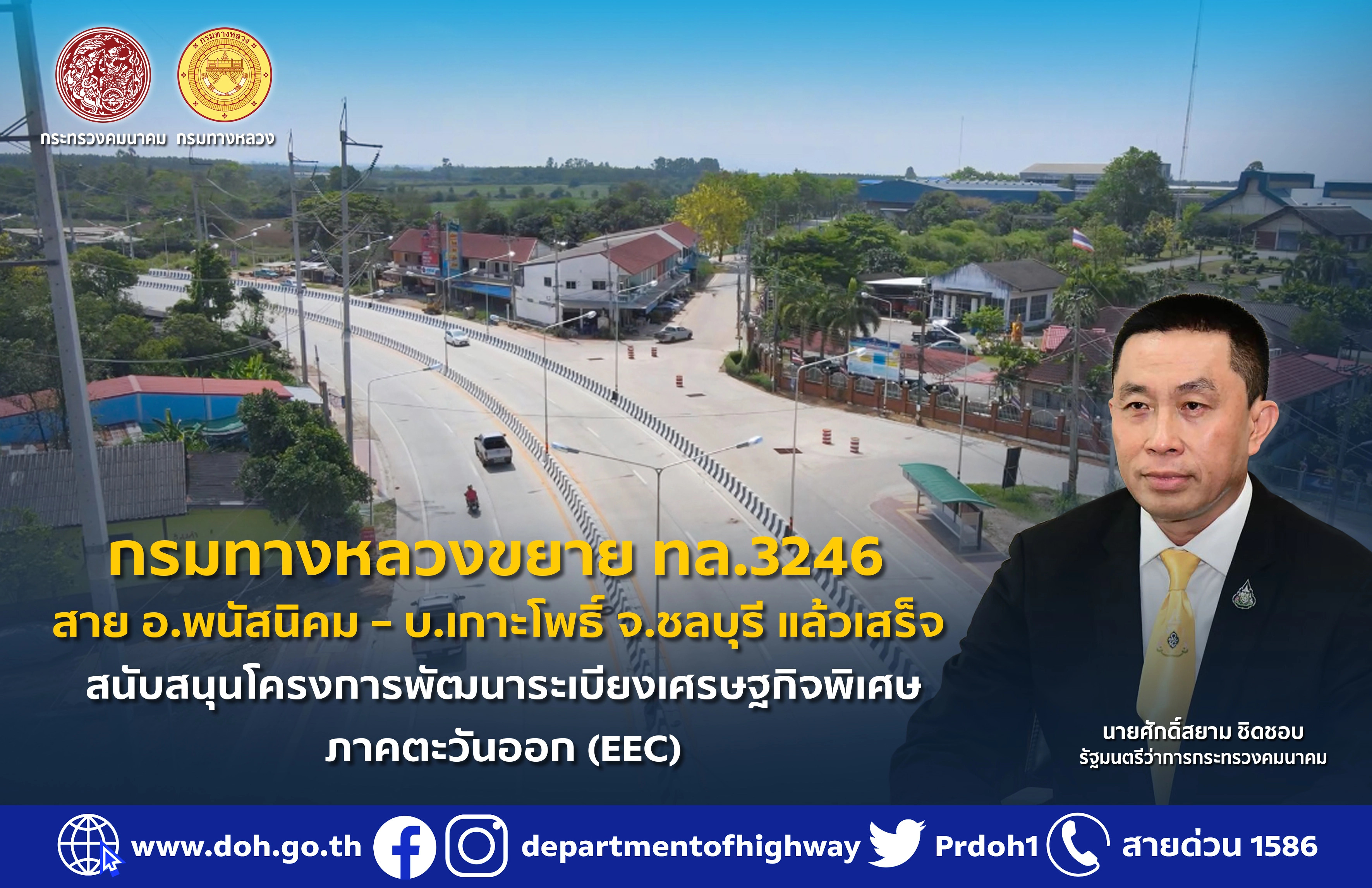 กรมทางหลวง โดยสำนักก่อสร้างทางที่ 2 ได้ดำเนินโครงการก่อสร้างขยายทางหลวงหมายเลข 3246 สาย อ.พนัสนิคม – บ.เกาะโพธิ์ จ.ชลบุรี แล้วเสร็จ ตามนโยบายของ นายศักดิ์สยาม ชิดชอบ รัฐมนตรีว่าการกระทรวงคมนาคม ที่ต้องการพัฒนาโครงข่ายทางหลวงให้มีความเชื่อมโยงและสามารถรองรับการจราจรที่มีแนวโน้มการขยายตัวเพิ่มสูงขึ้นในอนาคต โดยโครงการดังกล่าวเป็นโครงการภายใต้แผนยุทธศาสตร์ของโครงการพัฒนาระเบียงเศรษฐกิจพิเศษภาคตะวันออก (EEC)