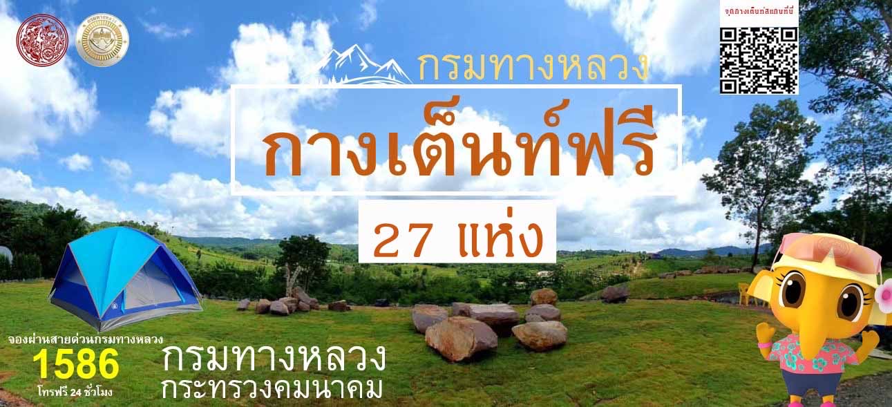กางเต็นท์ฟรี! กรมทางหลวงเปิดหมวดทางหลวงใกล้แหล่งท่องเที่ยว 27 แห่ง เพื่ออำนวยความสะดวกและรองรับการท่องเที่ยวของประชาชน ในช่วงเทศกาลสงกรานต์ 2566