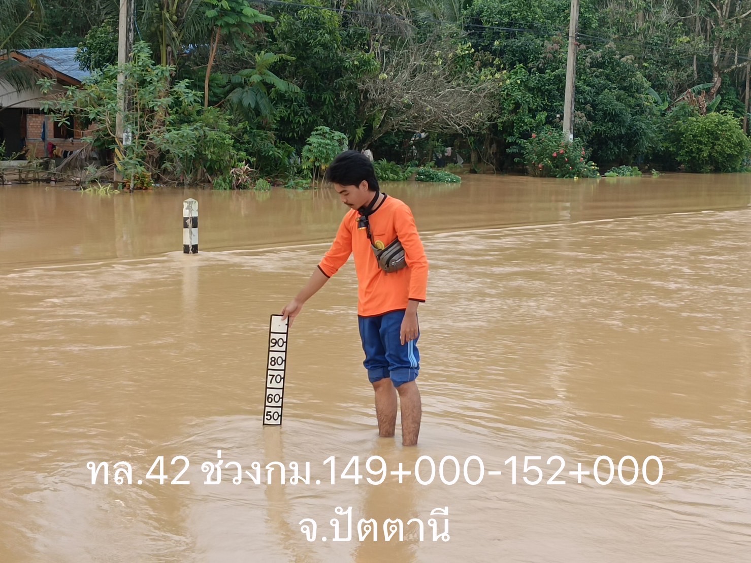 - บนทางหลวงหมายเลข 4092 ตอน จะร้งตาดง – มายอ ในพื้นที่ อ.ทุ่งยางแดง ช่วง กม.19+085 – กม.19+700 ระดับน้ำ 40 ซม. แนะนำใช้ทางเลี่ยงท้องถิ่น พร้อมเจ้าหน้าที่คอยอำนวยความสะดวกและปลอดภัย