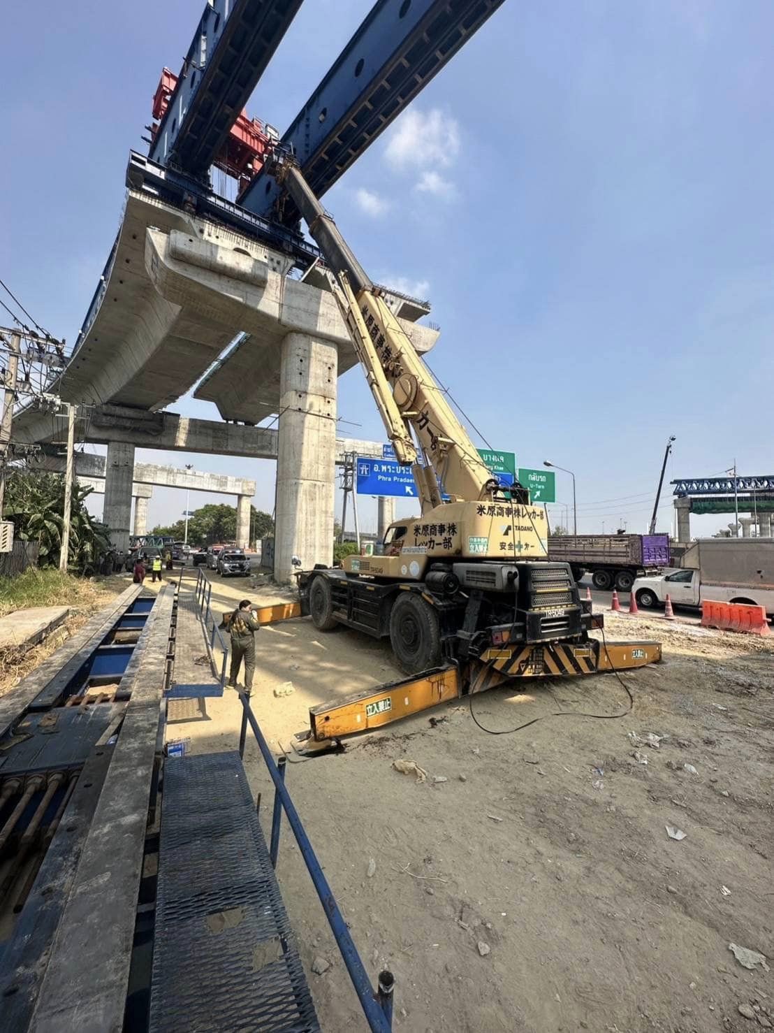 ทั้งนี้ โครงการก่อสร้างก่อสร้างดังกล่าว ดำเนินการโดยบริษัทกิจการร่วมค้าเอ็นทีเอ สัญญาเลขที่ สส. 23/2562 โดยที่ผ่านมาทางสำนักก่อสร้างสะพาน ได้สั่งการให้บริษัทผู้รับจ้างทุกสัญญา ดำเนินการตามมาตรการด้านความปลอดภัยอย่างเคร่งครัด อย่างไรก็ตาม เหตุการณ์ดังกล่าวอยู่ในพื้นที่ก่อสร้าง จึงไม่ส่งผลกระทบต่อรถที่สัญจรผ่านแต่อย่างใด