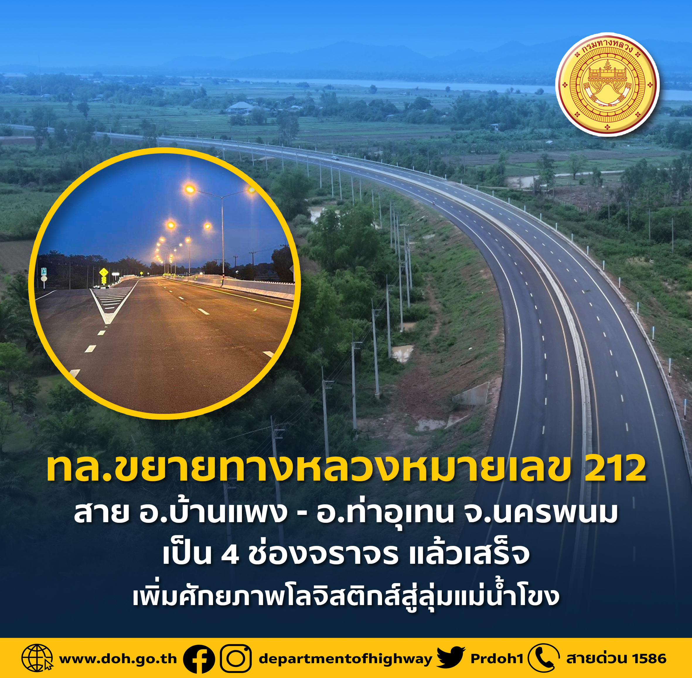 ทล.ขยายทางหลวงหมายเลข 212 สาย อ.บ้านแพง - อ.ท่าอุเทน จ.นครพนม เป็น 4 ช่องจราจร แล้วเสร็จ
