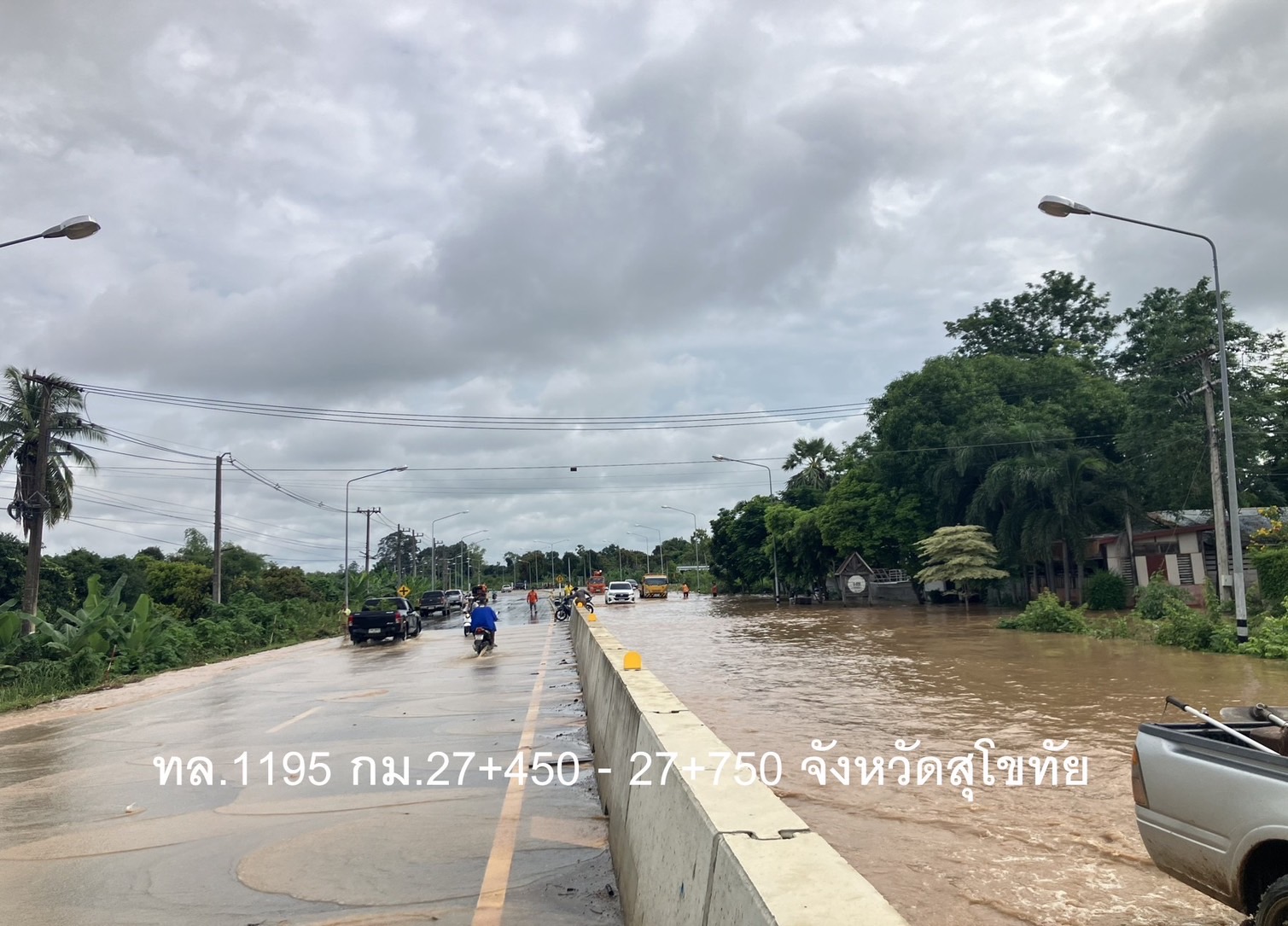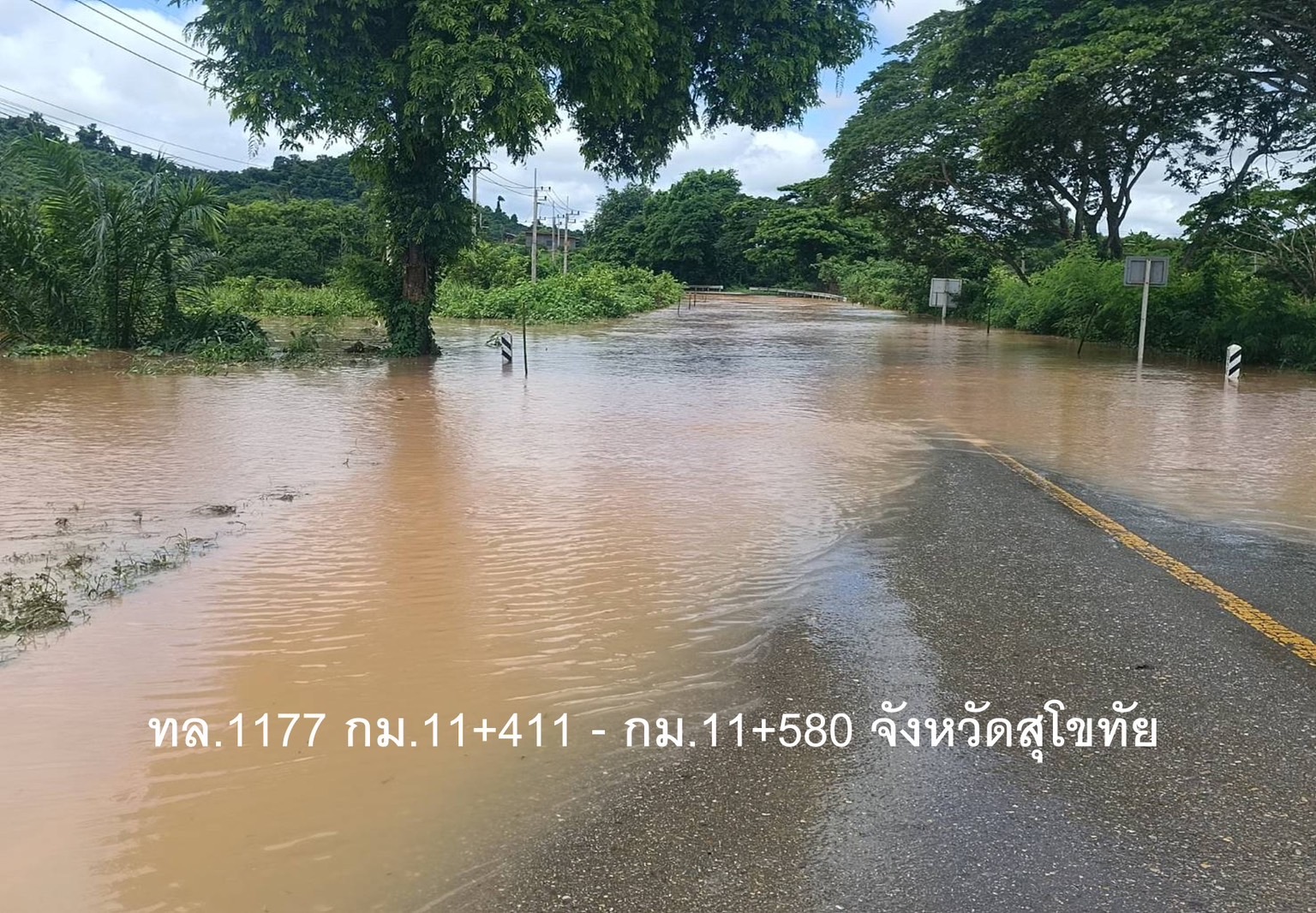 จังหวัดสุโขทัย ระดับน้ำสูง 45 ซม. แนะนำใช้ทางเลี่ยงแยกเกาะวงษ์เกียรติ์ และทางเลี่ยงแยก อบต.วังทอง