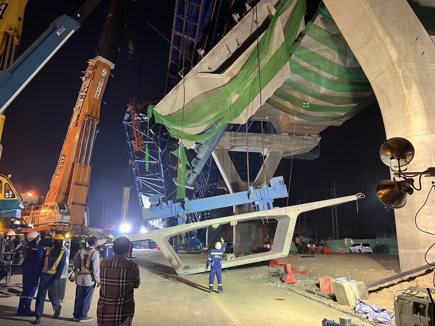 นายอภิรัฐ ไชยวงศ์น้อย อธิบดีกรมทางหลวง เปิดเผยความคืบหน้าการดำเนินการเคลื่อนย้ายโครงสร้างเหล็ก Launching Gantry และชิ้นส่วนพื้นสะพาน (segment) บนทางหลวงหมายเลข 35 (ถนนพระราม 2) ที่ได้รับความเสียหาย โดยเมื่อวันที่ 3 ธันวาคม 2567 เวลา 18.57 น. ทีมวิศวกรได้ดำเนินการยก Segment No.1 ที่ค้างอยู่ลงจาก Launching Gantry (LG) เสร็จสิ้นด้วยความเรียบร้อยและปลอดภัย สำหรับแผนการทำงานวันนี้ (4 ธันวาคม 2567) จะพยายามปลด Segment No.2-3 ที่ยึดติดกันลงมา ขณะนี้อยู่ระหว่างดำเนินการโดยมีทีมวิศวกรผู้เชี่ยวชาญกำกับควบคุมทุกขั้นตอนการทำงานอย่างไกล้ชิด