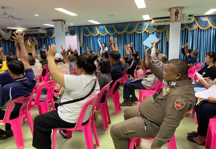 ผู้เข้าร่วมประชุม เห็นด้วยกับการดำเนินการก่อสร้าง คิดเป็นร้อยละ 100