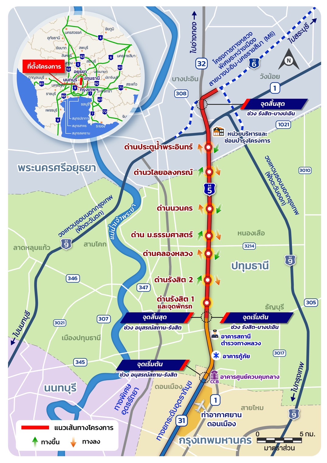 • โครงการ M5 (ช่วงรังสิต – บางปะอิน): วงเงินลงทุนประมาณ 31,358 ล้านบาท ดำเนินการในรูปแบบ PPP Gross Cost เอกชนเป็นผู้ลงทุนก่อสร้าง ดำเนินงาน และบำรุงรักษาโครงการ รัฐเป็นเจ้าของรายได้ค่าผ่านทางทั้งหมด และจ่ายค่าตอบแทนให้เอกชนตามผลการดำเนินงาน (Performance-Based Payment) โดยมีระยะเวลาดำเนินโครงการไม่เกิน 34 ปี แบ่งเป็น 2 ระยะ ได้แก่