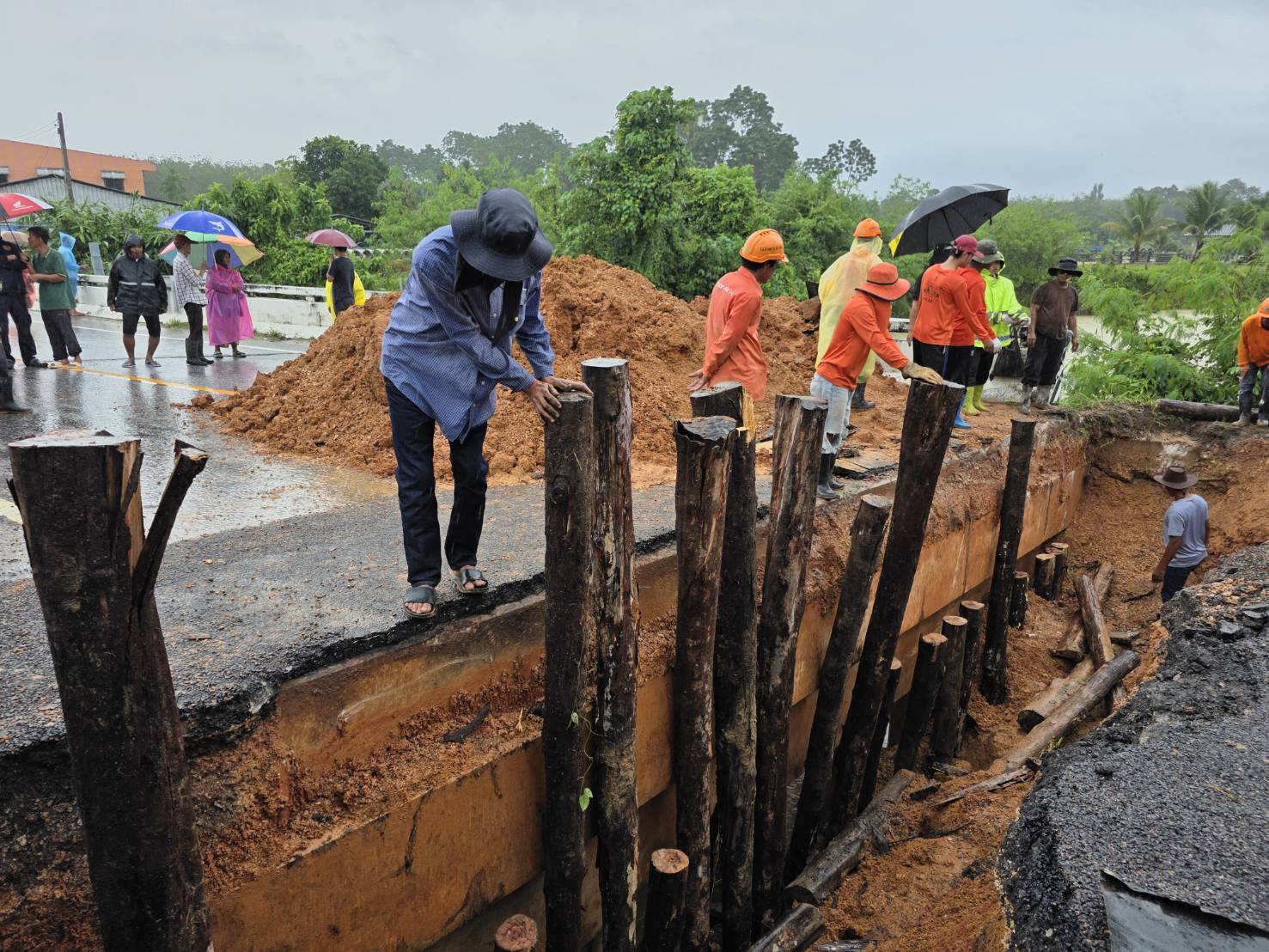 ศูนย์ฯ ได้วางแผนและดำเนินการแก้ไขอย่างเร่งด่วนในวันอาทิตย์ที่ 23 พฤศจิกายน 2568 โดยก่อสร้างเป็นคันทางหิน ( Rock Embankment ) ซึ่งเป็นการขุดเปิดคอสะพานและนำหินใหญ่วางเรียงเพื่อเสริมความมั่นคง และได้ดำเนินการแล้วเสร็จ เปิดให้สัญจรได้ในเวลา 17.00 น.