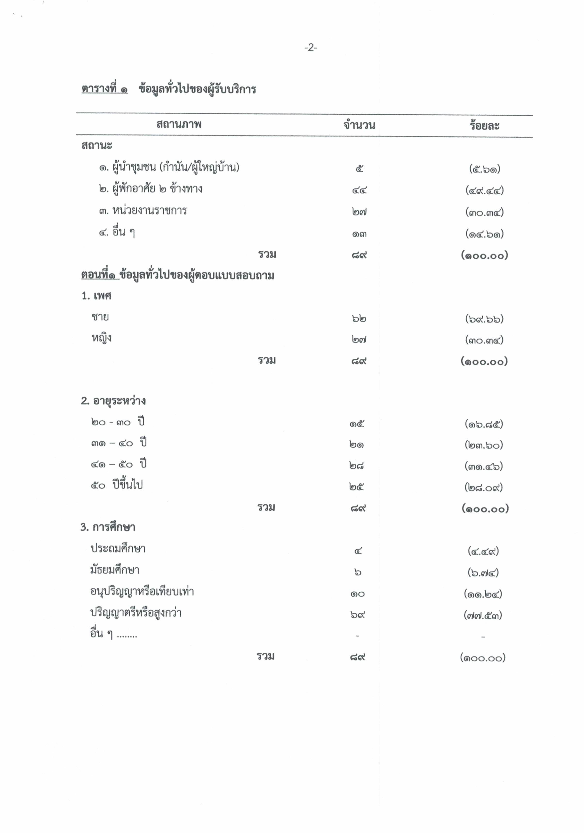 สรุปแบบสอบถามความคิดเห็น : การรับฟังความคิดเห็นของประชาชน