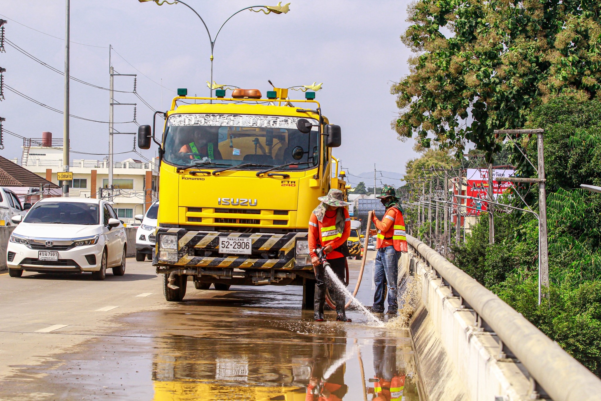 แขวงทางหลวเชียงใหม่ที่ 2 โดยหมวดทางหลวงสารภี จัดการจราจรบริเวณสี่แยกกองทราย (ทางหลวงหมายเลข 121 ตัดกับถนนสายต้นยาง)