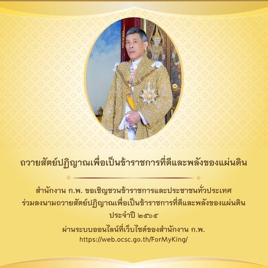 ขอเชิญชวนข้าราชการและประชาชนทั่วประเทศ ร่วมลงนามถวายสัตย์ปฏิญาณเพื่อเป็นข้าราชการที่ดีและพลังของแผ่นดิน ประจำปี 2565