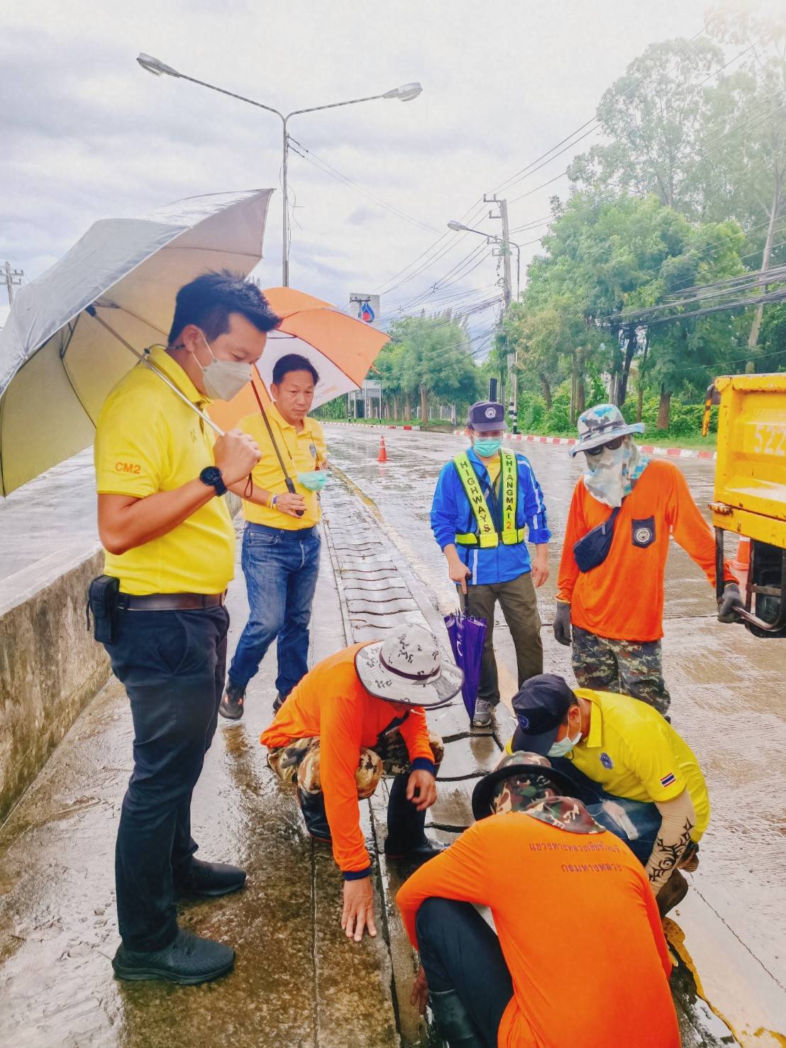 นายนิคม เทพบุตร ผู้อำนวยการแขวงทางหลวงเชียงใหม่ที่ 2, นายวิทยา ไชยนันท์ รองผู้อำนวยการแขวงทางหลวงฯ ฝ่ายปฏิบัติการ, นายธีระพงษ์ ขจรเดชากุล รองผู้อำนวยการแขวงทางหลวงฯ ฝ่ายวิศวกรรม พร้อมด้วยเจ้าหน้าที่ ลงพื้นที่ร่วมกับเทศบาลนครเชียงใหม่ และเทศบาลตำบลสุเทพ บูรณาการร่วมแก้ไขปัญหาน้ำท่วมขังบริเวณถนนหน้ากองบิน 41 ทางหลวงหมายเลข 1141 ทางหลวงเพื่อประชาชน