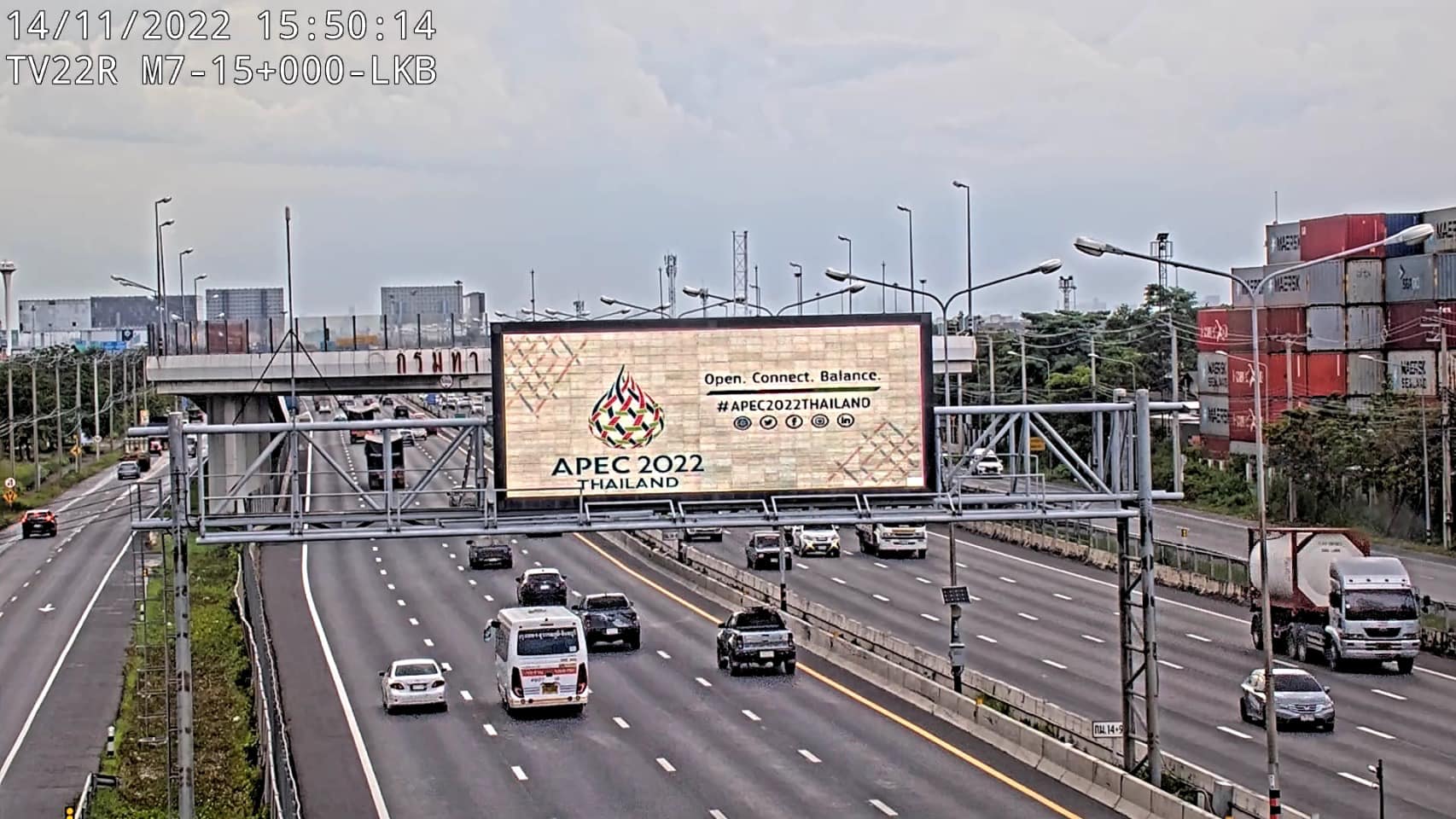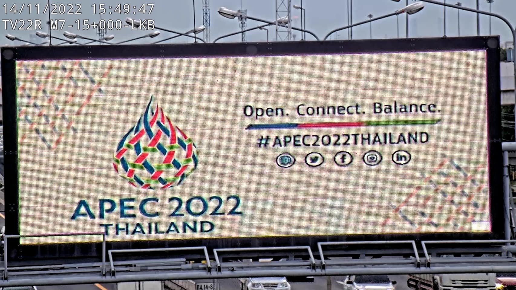 นอกจากนี้ แขวงทางหลวงในพื้นที่ได้ดำเนินการประดับธง APEC ในสายทางที่รับผิดชอบ จำนวน 2,204 ผืน และบนทางยกระดับอุตราภิมุข (ดอนเมืองโทลล์เวย์) จำนวน 88 ผืน พร้อมแสดงข้อความต้อนรับด้วยป้ายปรับเปลี่ยนข้อความ (VMS) จำนวน 46 ป้าย บนทางหลวงพิเศษหมายเลข 7 (กรุงเทพ – มาบตาพุด) และบนทางหลวงพิเศษหมายเลข 9 (บางปะอิน - บางพลี) ซึ่งในช่วงวันหยุดยาวระหว่างวันที่ 16 – 20 พฤศจิกายน 2565 รวม 5 วัน สำนักอำนวยความปลอดภัย กรมทางหลวง คาดการณ์ปริมาณจราจรบนทางหลวงสายหลัก 10 เส้นทาง และบนมอเตอร์เวย์รวมทั้งสิ้นจำนวน 4,932,879 คัน แบ่งเป็นฝั่งขาเข้ากรุงเทพ 2,509,404 คัน และฝั่งขาออกกรุงเทพ 2,423,475 คัน