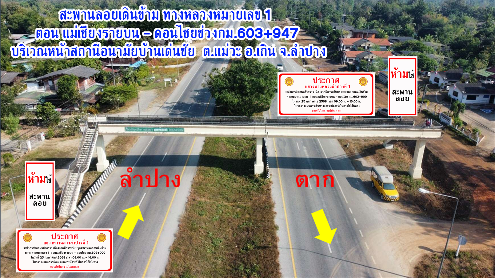 รื้อถอนคานสะพานลอยคนเดินข้ามออก ในเขตทางหลวงหมายเลข 1 ตอน แม่เชียงราย – ดอนไชย ที่กม.603+947