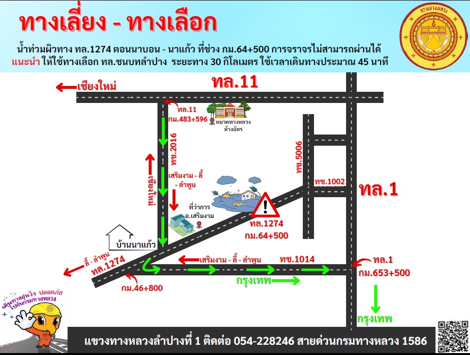 สรุปสถานการณ์น้ำท่วมประจำวันที่ 24 ก.ย. 67 ในเขตพื้นที่ควบคุมแขวงทางหลวงลำปางที่ 1
