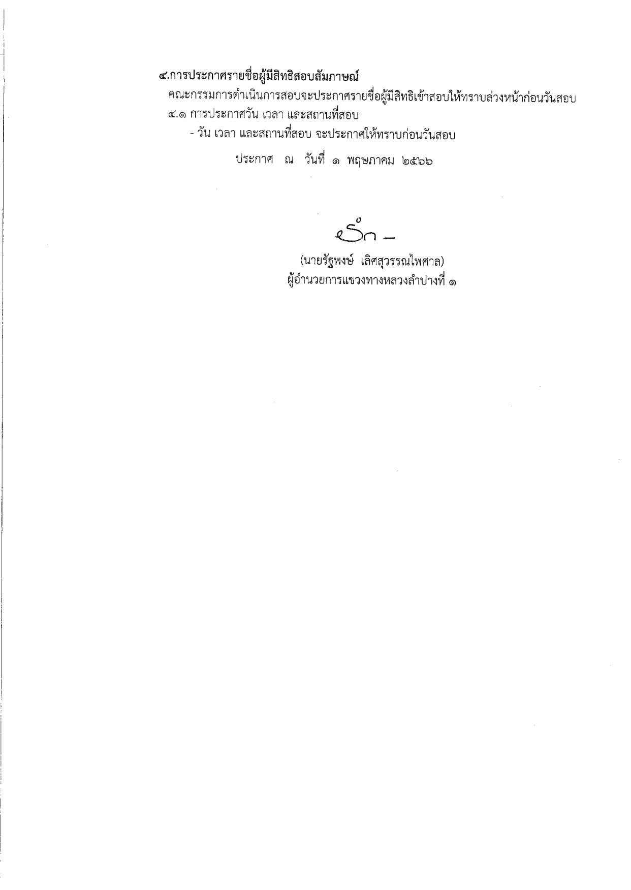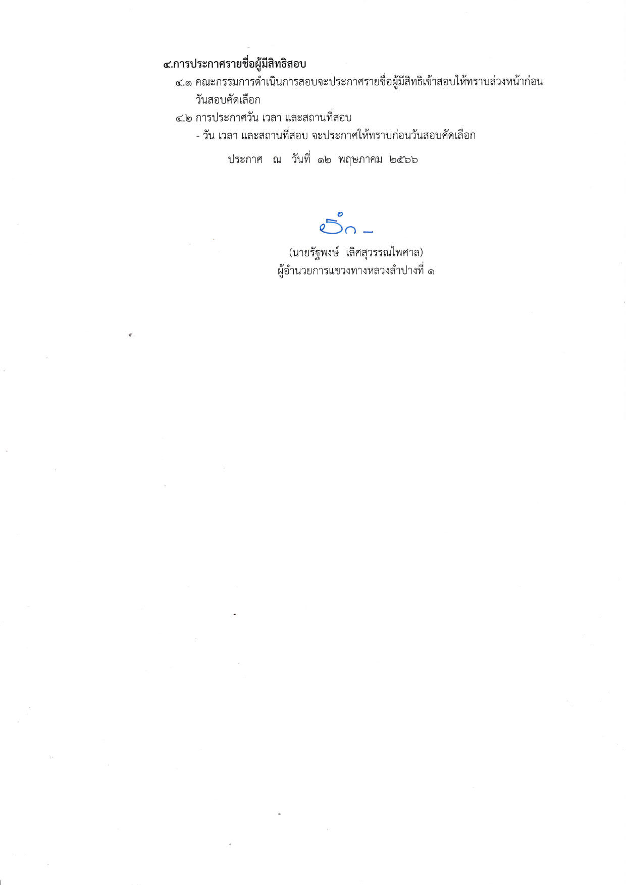ประกาศแขวงทางหลวงลำปางที่ ๑ รับสมัครบุคคลเพื่อสอบคัดเลือกเป็นลูกจ้างชั่วคราว ตำแหน่ง คนงาน ทำหน้าที่ ยามรักษาการณ์ จำนวน ๑ อัตรา