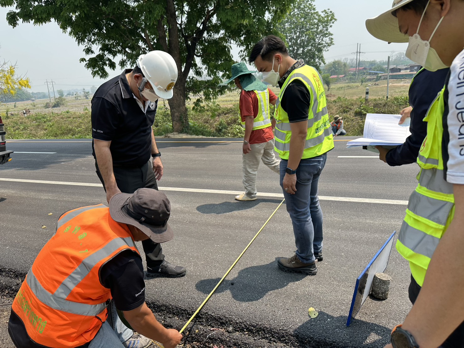 นายวันเฉลิม เจตะบุตร รองผู้อำนวยการแขวงทางหลวงลำปางที่ 1 ฝ่ายวิศวกรรม กรรมการฯ นายชัยวัฒน์ เตชะนันท์ หัวหน้างานหมวดทางหลวงสบปราบ กรรมการฯ นายวิทยา กาวิละ วิศวกรโยธาปฏิบัติการ ผู้ควบคุมงาน
