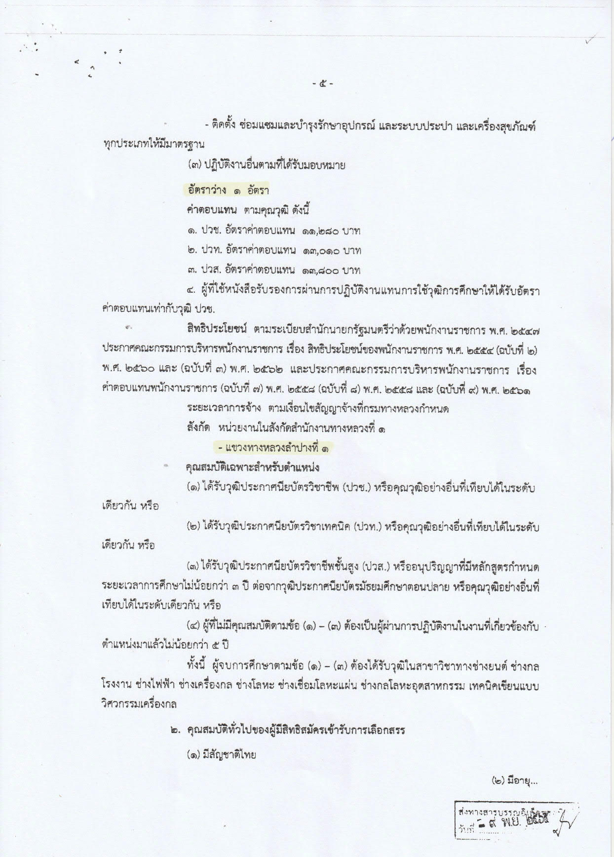 หากสนใจยื่นใบสมัคร ณ แชวงทางหลวงลำปางที่ ๑ หรือสอบถามได้ที่ ๐๕๔-๒๒๘๒๔๖ ต่อ ๑๖