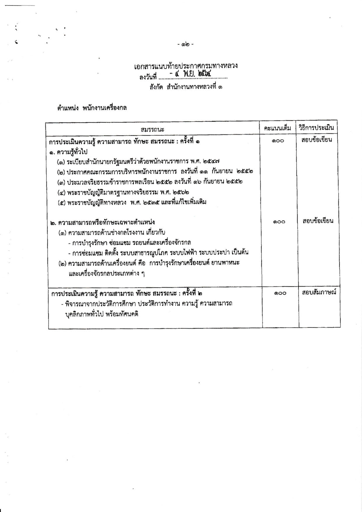 แขวงทางหลวงลำปางที่ ๑ รับสมัครพนักงานราชการทั่วไป ตำแหน่งพนักงานเครื่องกล จำนวน ๑ อัตรา