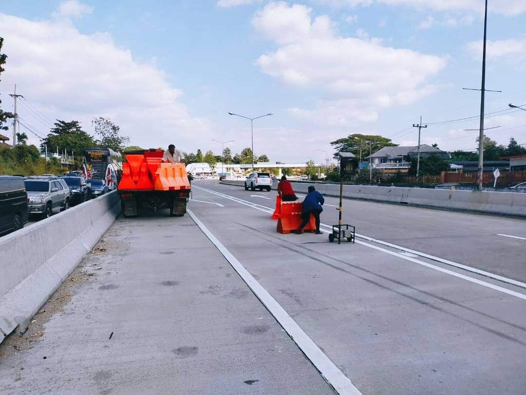 แขวงทางหลวงลำปางที่ 1 โดยหมวดทางหลวงห้างฉัตร ดำเนินการติดตั้งอุปกรณ์อำนวยความปลอดภัยบริเวณทางออกคู่ขนาน