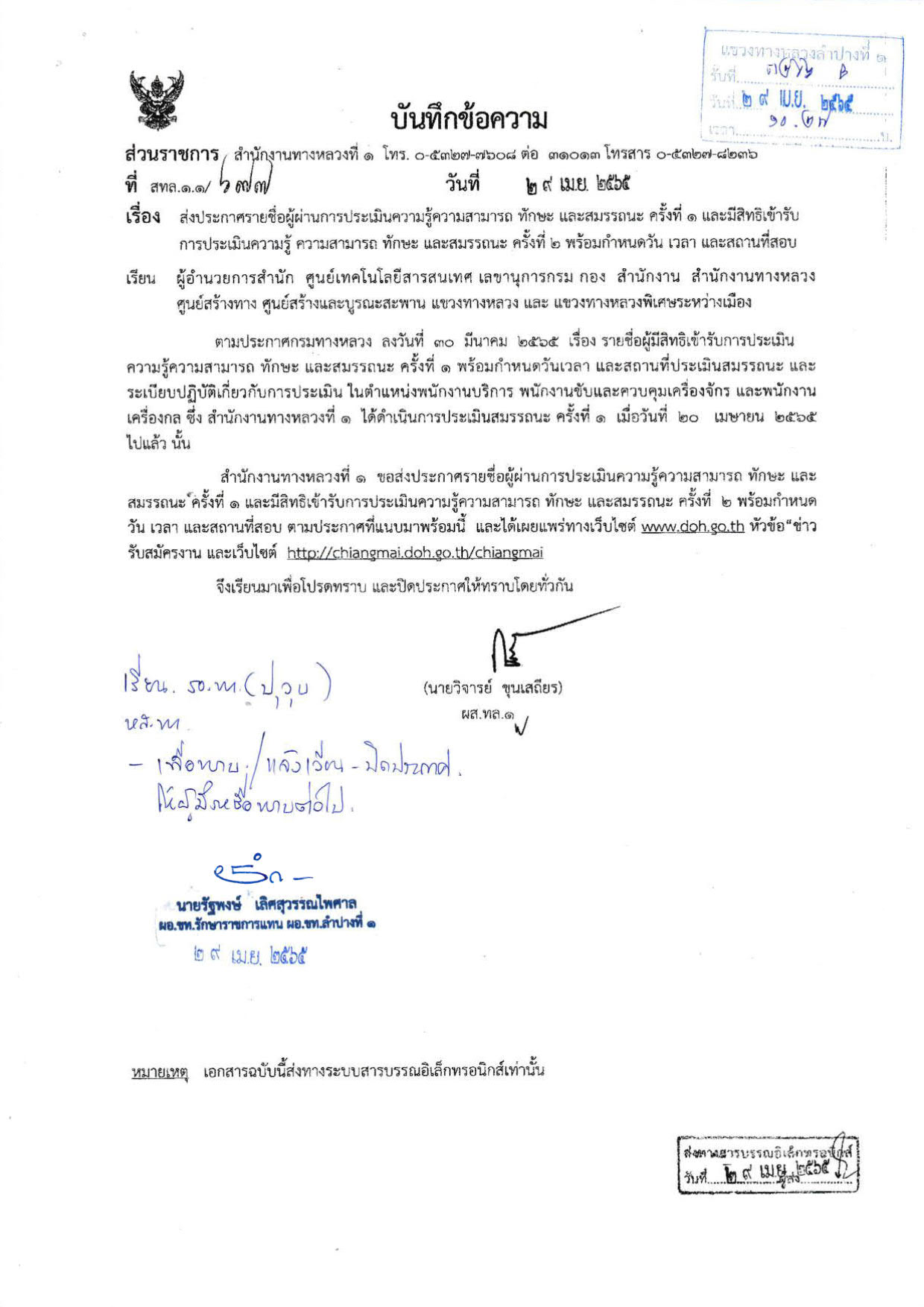 ประกาศรายชื่อผู้ผ่านการประเมินความรู้ความสามารถ ทักษะ สมรรถนะ ครั้งที่ 1 และมีสิทธิเข้ารับการประเมินความรู้ความสามารถ ทักษะ สมรรถนะครั้งที่ 2 พร้อมกำหนดวัน เวลา และสถานที่สอบ