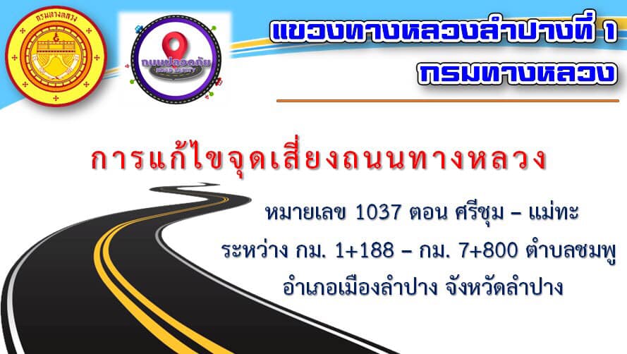 ร่วมถ่ายทำและสัมภาษณ์รายการถนนปลอดภัย ช่อง 7 HD เรื่อง พื้นที่จุดเสี่ยงจังหวัดลำปางที่ได้รับการแก้ไข บนทางหลวงหมายเลข 1037 ตอน ศรีชุม - แม่ทะ ระหว่าง กม.6+188 - กม.7+800