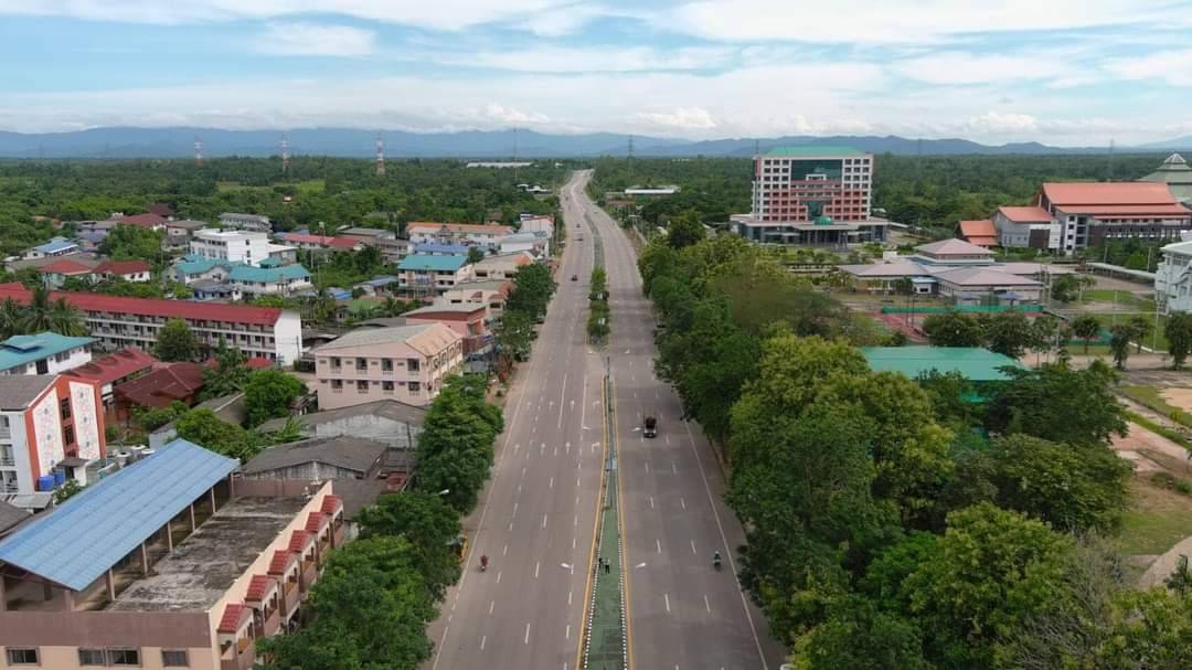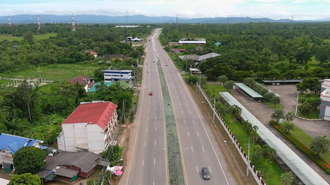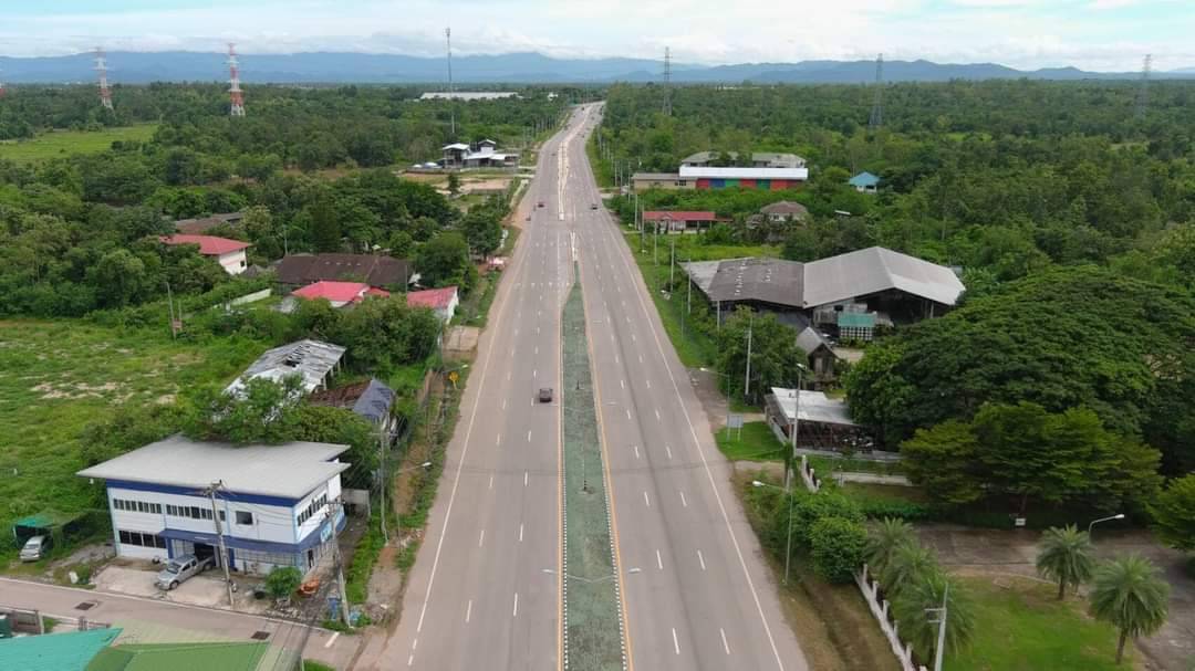 ภาพถ่ายทางอากาศสถานการณ์หลังน้ำท่วม บริเวณทางหลวงหมายเลข 1037 ตอน ศรีชุม - แม่ทะระหว่าง กม.6+100 - 6+700