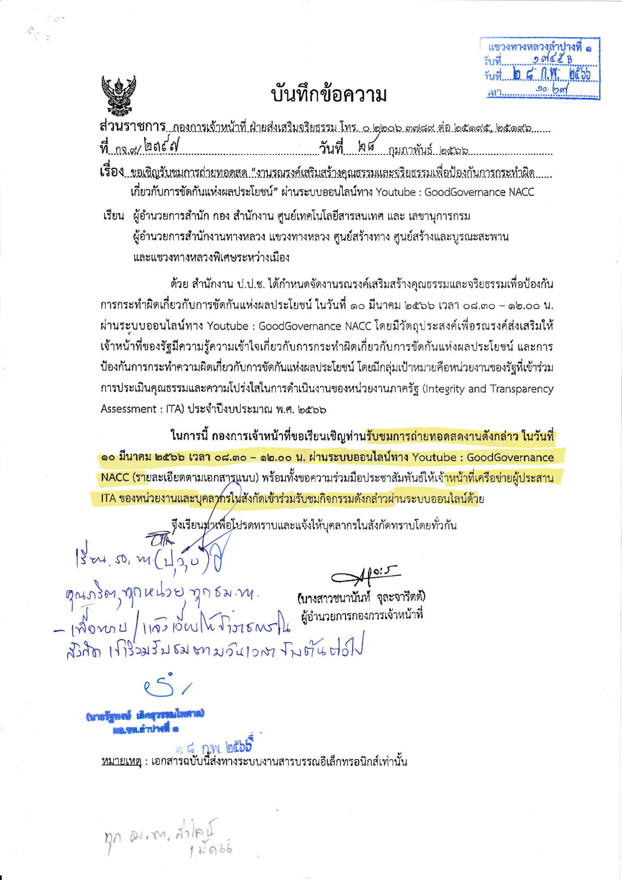 ขอเชิญรับชมการถ่ายทอดสด "งานรณรงค์เสริมสร้างคุณธรรมและจริยธรรมเพื่อป้องกันการกระทำผิดเกี่ยวกับการขัดกันแห่งผลประโยชน์" ผ่านระบบออนไลน์ทาง Youtube : GoodGovernance NACC
