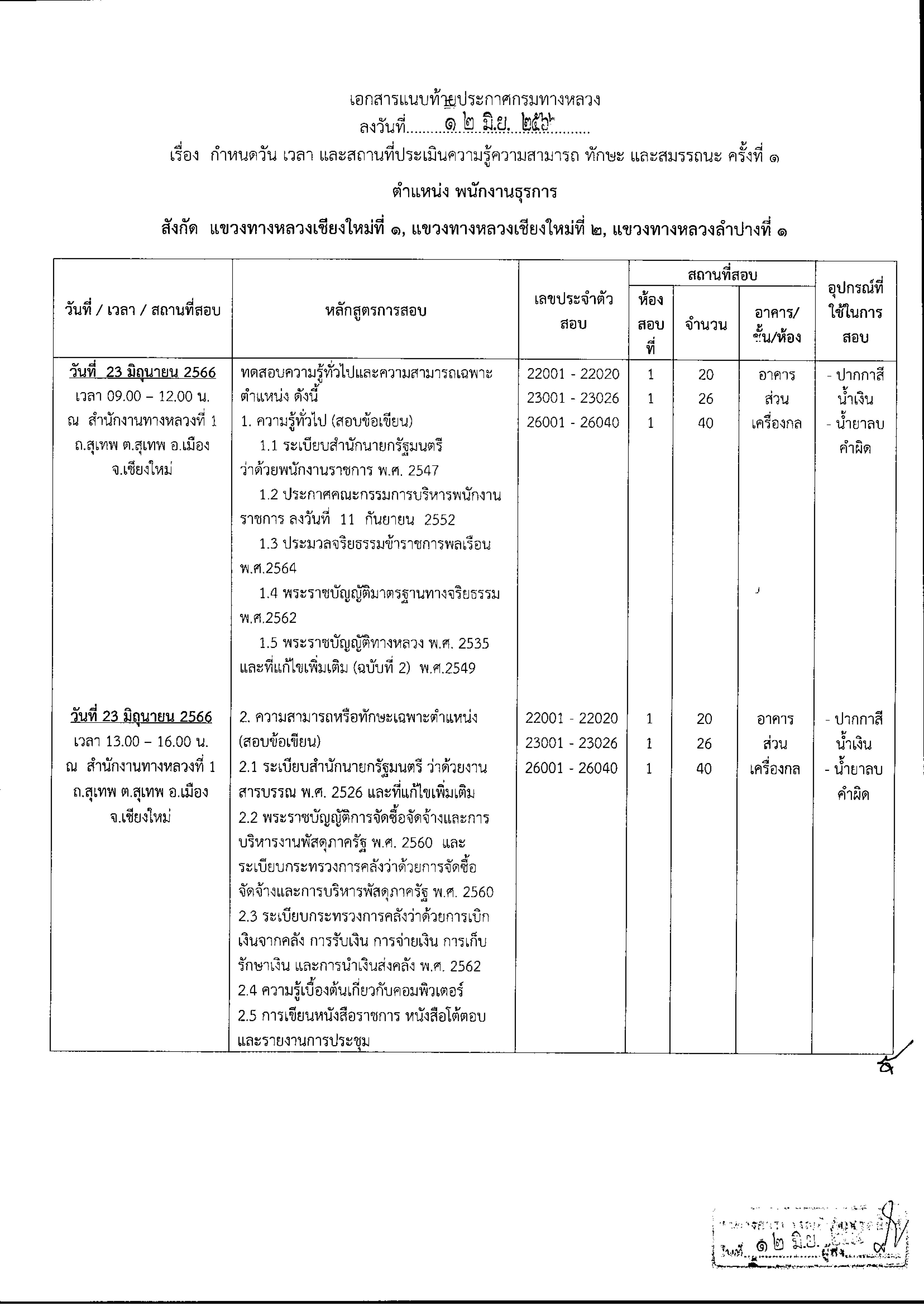 ประกาศรายชื่อผู้มีสิทธิ์เข้ารับการประเมินความรู้ตวามสามารถ ทักษะ และสมรรถนะ ครั้งที่ 1 กำหนด วัน เวลา สถานที่ประเมิน และระเบียบปฏิบัติเกี่ยวกับการประเมินเพื่อเลือกสรรเป็นพนักงานราชการทั่วไป