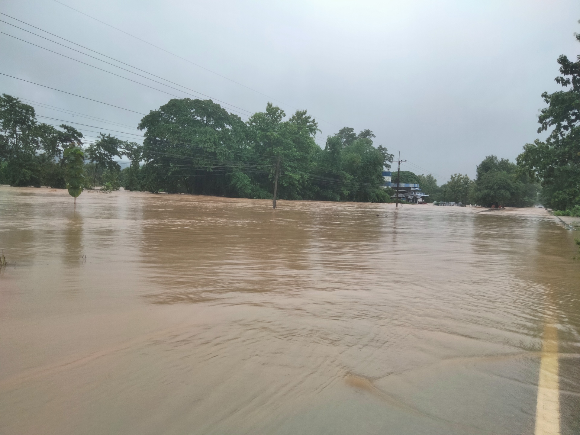 เนื่องจากมีฝนตกหนัก ทำให้มีน้ำท่วมขังทางหมายเลขทางหลวง 106