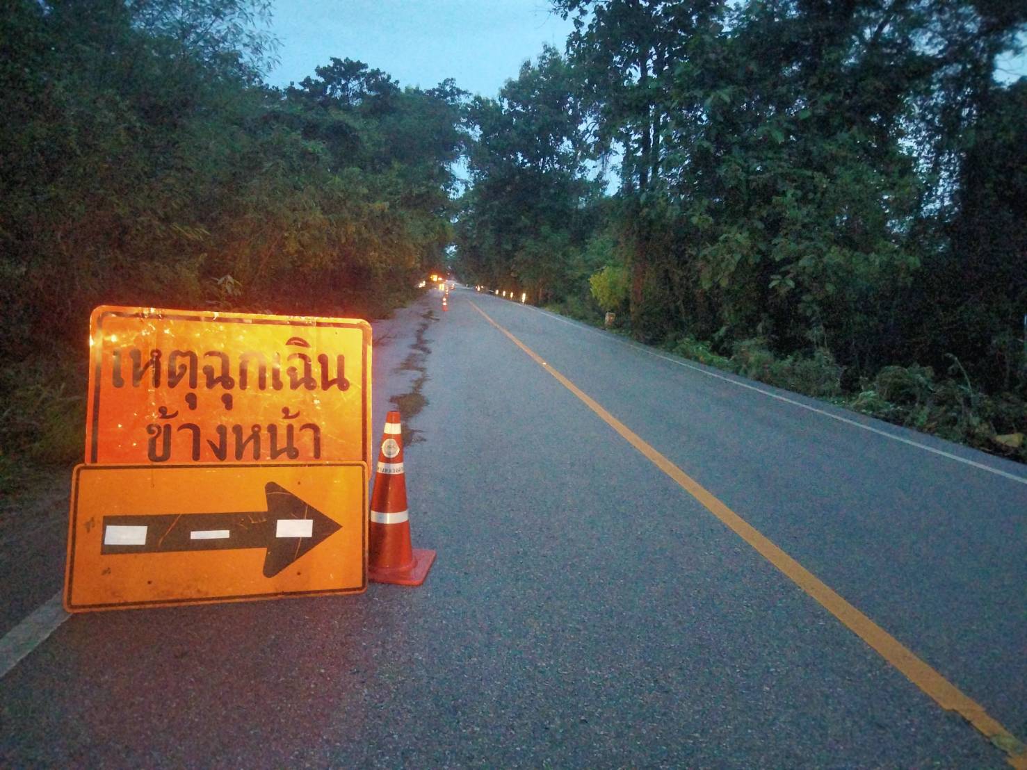 ดำเนินการติดตั้งป้ายเตือน ถังยาง กรวยยาง และสัญญานไฟกระพริบ