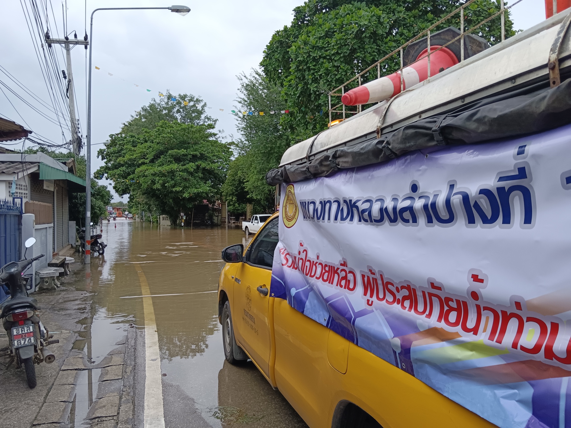 หมวดทางหลวงห้างฉัตร ได้เข้าอำนวยความปลอดภัยตอดตั้งป้ายและหลักนำทางโดยมีการสนับสนุนจากเจ้าหน้าที่ตำรวจและเทศบาลให้การจราจรช่วยเหลือผู้ประสบภัย
