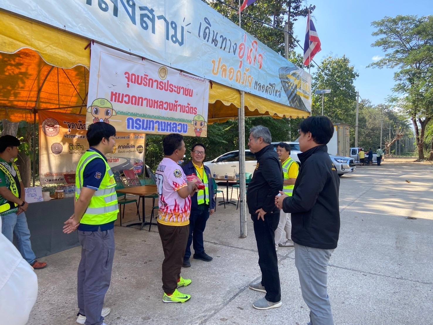 นายวรศักดิ์ วงษ์รอด ผู้อำนวยการสำนักงานทางหลวงที่ 1 พร้อมด้วยนายภาสกร เจตะบุตร ผู้อำนวยการส่วนอำนวยความปลอดภัย นายสอาด ทิพย์ศรีบุตร ผู้อำนวยการส่วนเครื่องกล นายภาณุพันธุ์ ลิ้มถาวร วิศกรเครื่องกลปฏิบัติการ พร้อมด้วยคณะ