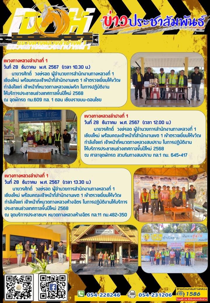 โดยมี นายสุรพงค์ สุทธนะ รองผู้อำนวยการแขวงทางหลวงลำปางที่ 1(ฝ่ายปฏิบัติการ) นายนิทัศน์ ปังกิลินันท์ หัวหน้าหมวดทางหลวงแม่พริก นายสิริศักดิ์ รัชตะจิรวิทย์ หัวหน้าหมวดทางหลวงห้างฉัตร นายชัยวัฒน์ เตชะนันท์ หัวหน้าหมวดทางหลวงสบปราบ นายนัฐพงษ์ ปงใจ ผู้ช่วยหมวดทางหลวงห้างฉัตร นายบัณฑิต ศริวงศ์ ผู้ช่วยหมวดทางหลวงสบปราบและ เจ้าหน้าที่หมวดฯ ให้การต้อนรับ