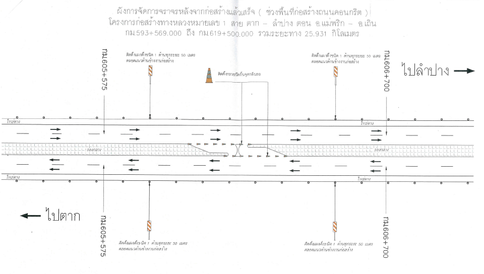 ประชาสัมพันธ์แผนผังทางปิดและการเบี่ยงจราจร ทางหลวงหมายเลข 1 สายตาก - ลำปาง ตอน อ.แม่พริก - อ.เถิน กม.593+569 - กม.619+500