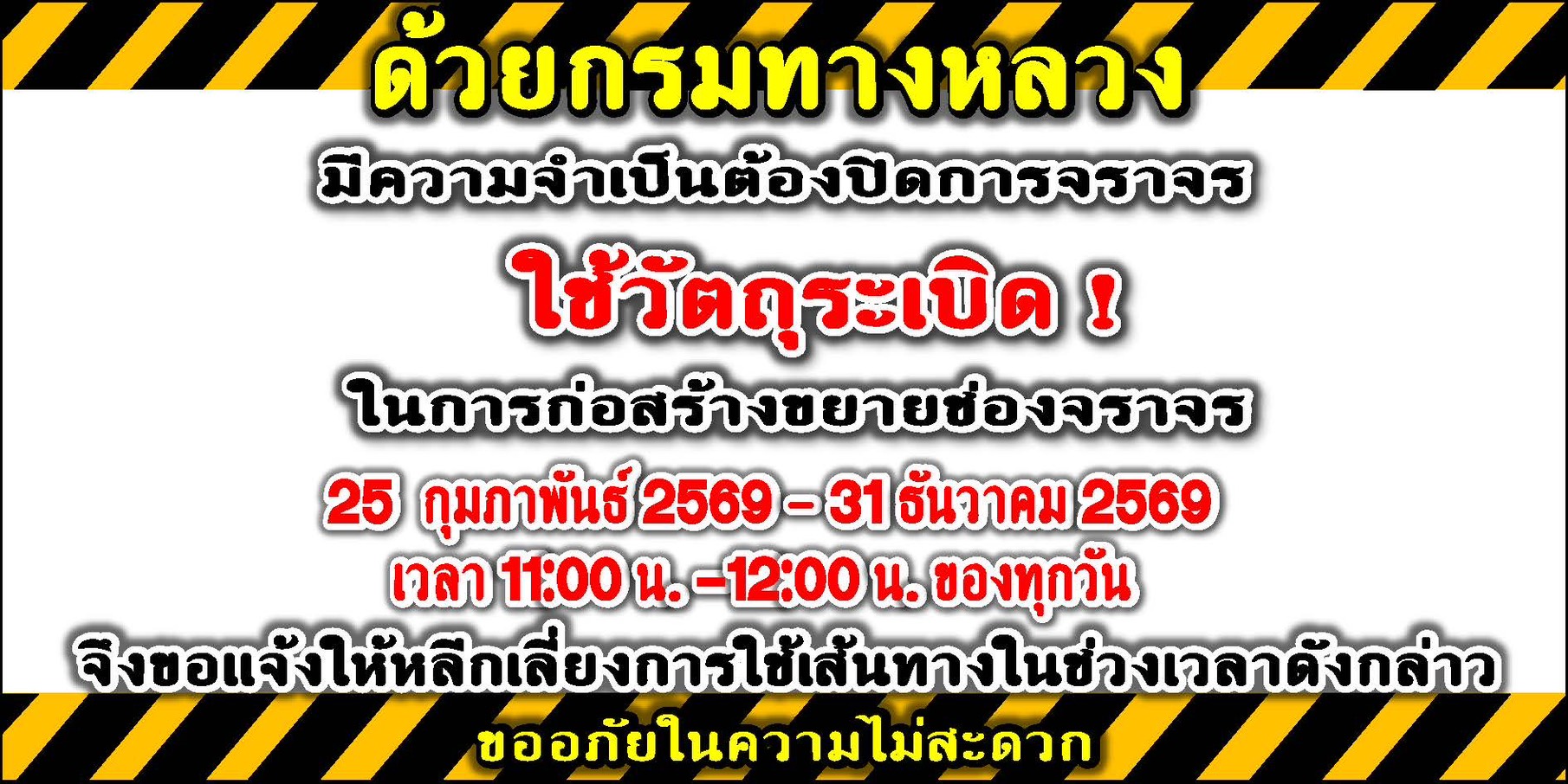 ประชาสัมพันธ์การเบี่ยงการจราจรเพื่อทำการก่อสร้างสะพานบริเวณ ทางหลวงหมายเลข 103
