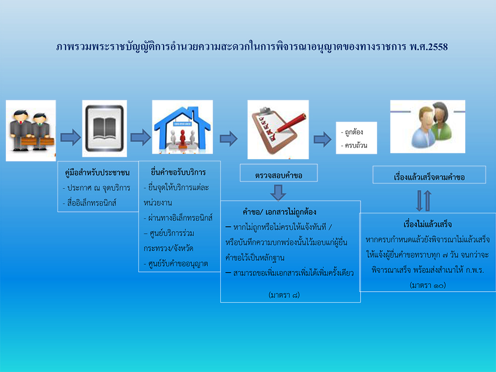 2. คำขอถูกต้องและแนบเอกสารครบถ้วนตามระบุในคู่มือฯ ก็ให้ดำเนินการตามขั้นตอนและระยะเวลาต่อไป ซึ่งจะเรียกเอกสารเพิ่มเติมอีกไม่ได้